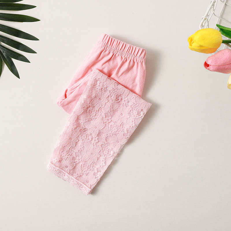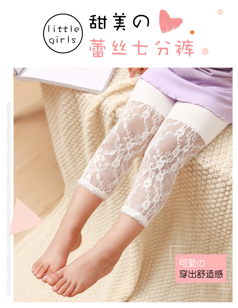 소녀의 크롭 팬츠 여름 얇은 바깥 레깅스 어린이 어린 소녀의 흰색 아기의 여름 여성용 레이스 바지
