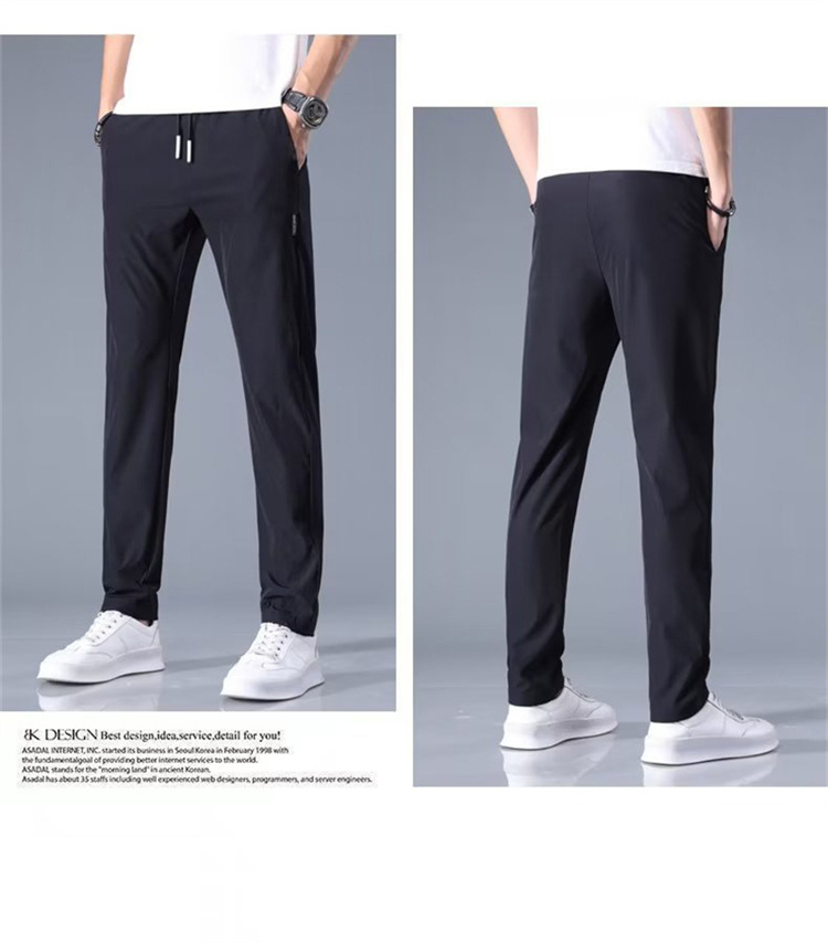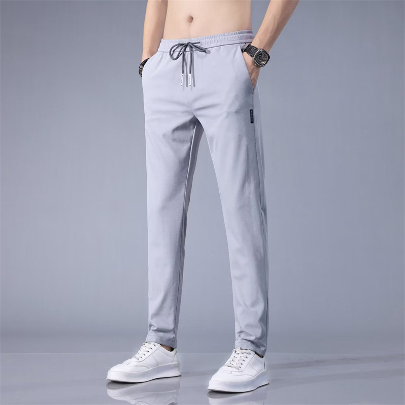 2023 년 신형 롱팬츠 남성 스트레이트 캐주얼 팬츠 여름 초박형 슬림 아이스 실크 스포츠 팬츠스토어 가기