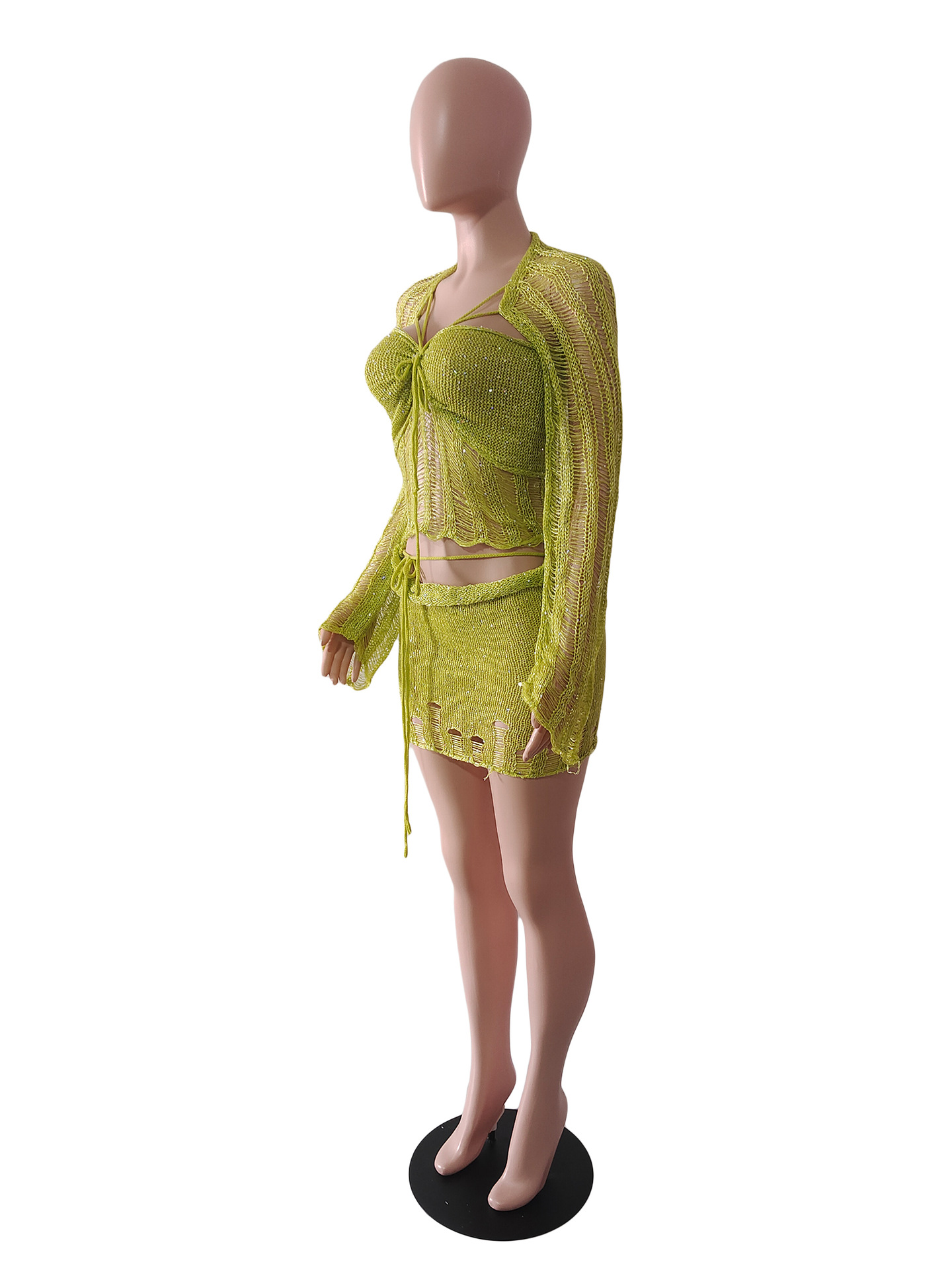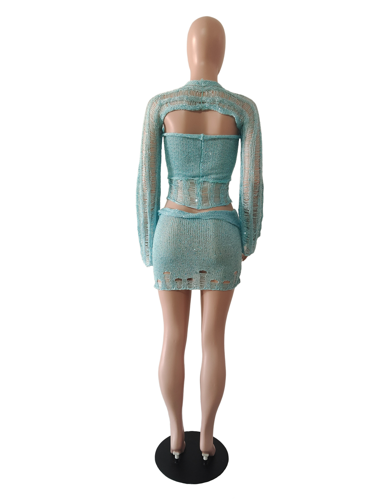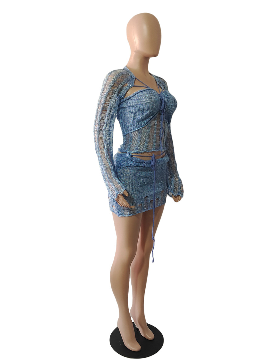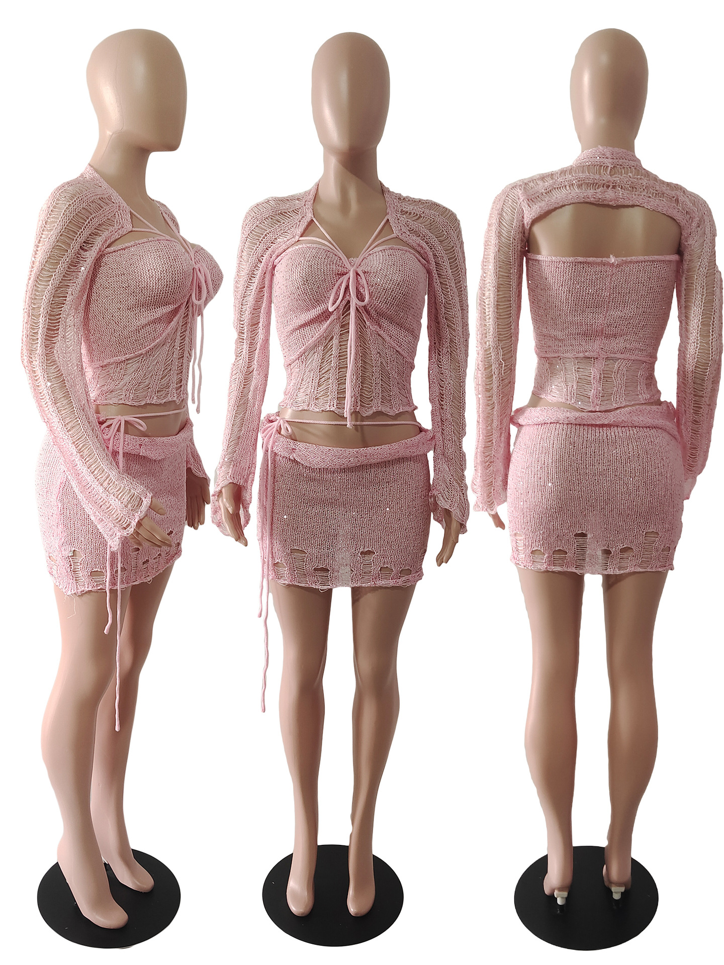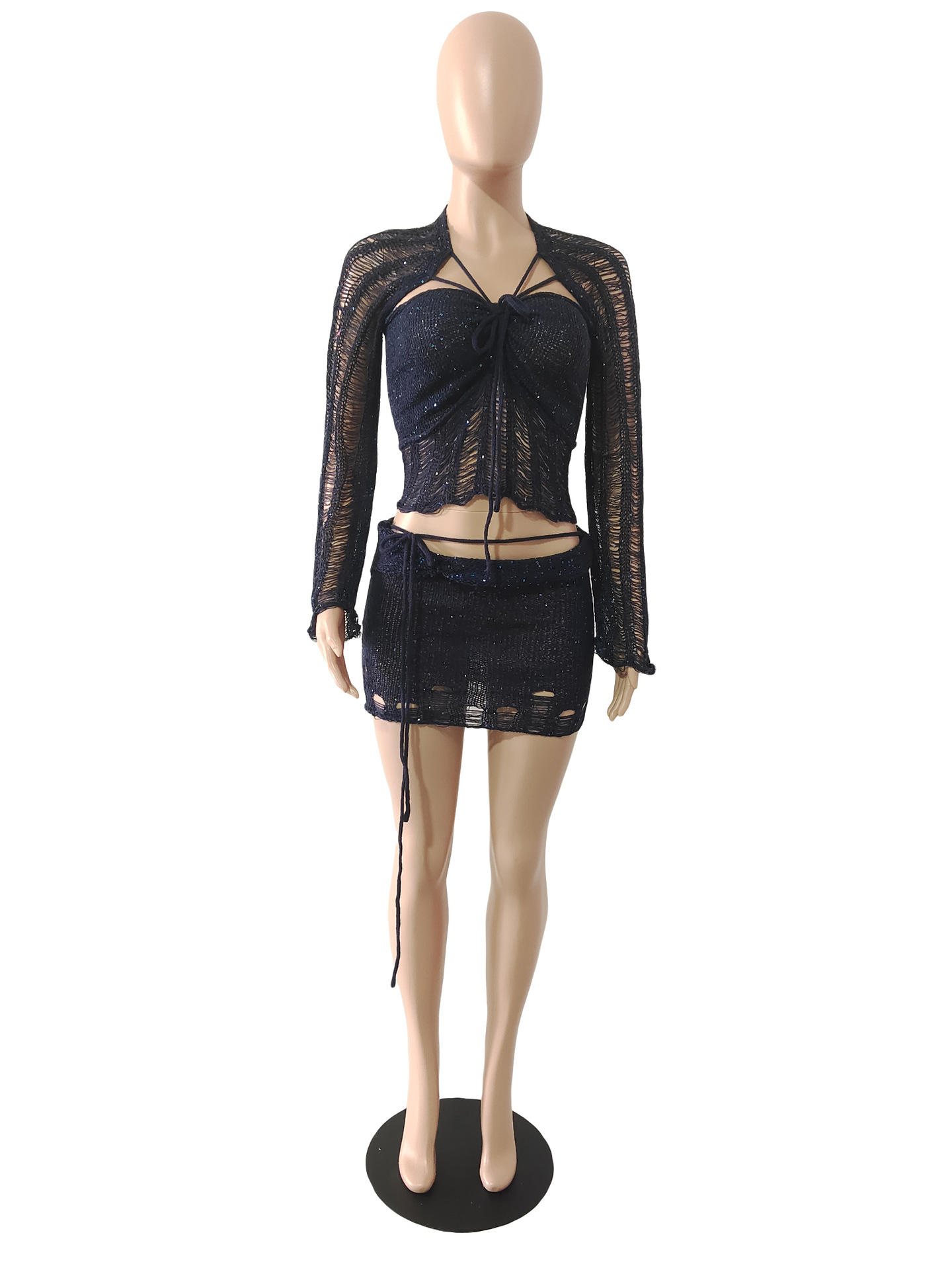 CN0288 유럽 및 미국 여성 의류 2023 새로운 독립 스테이션 AliExpress 스팽글 니트 스웨터 3 피스 세트 세트