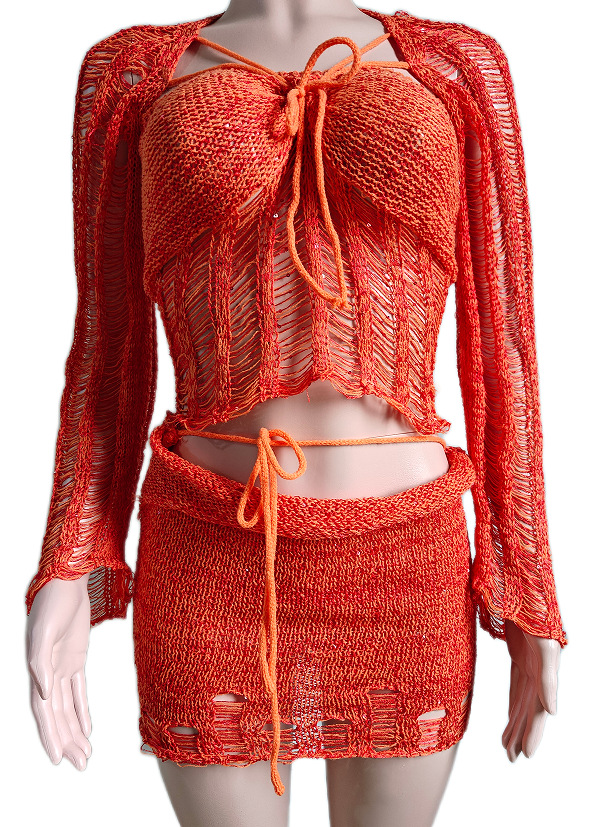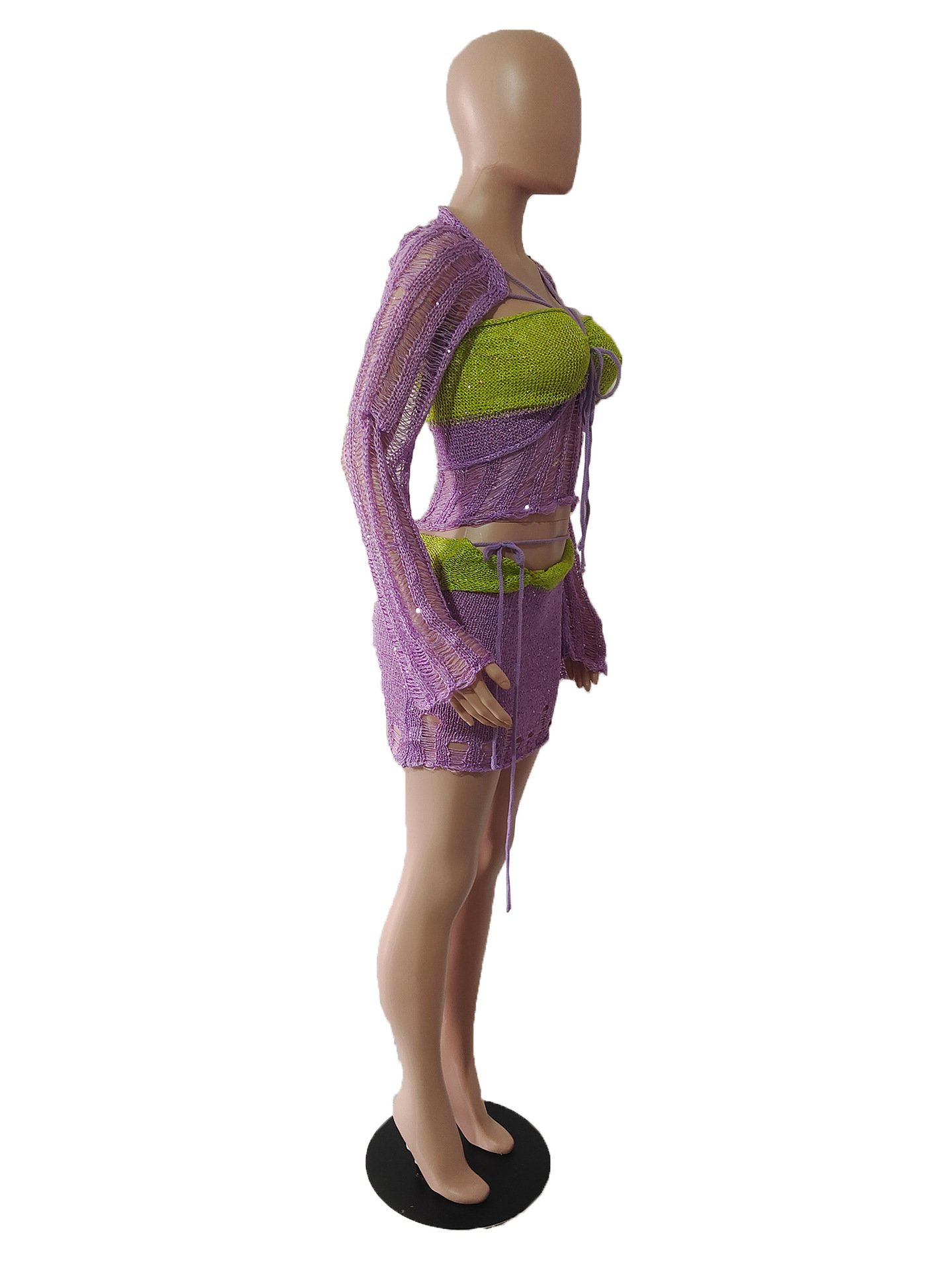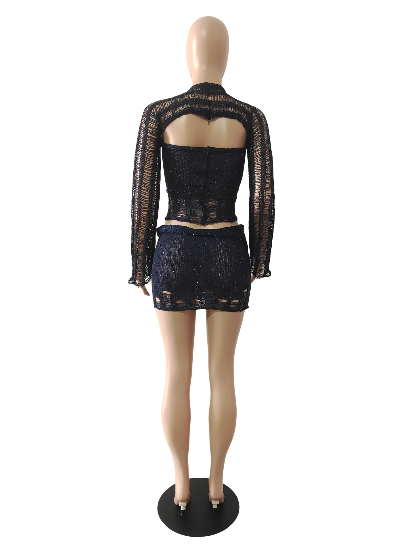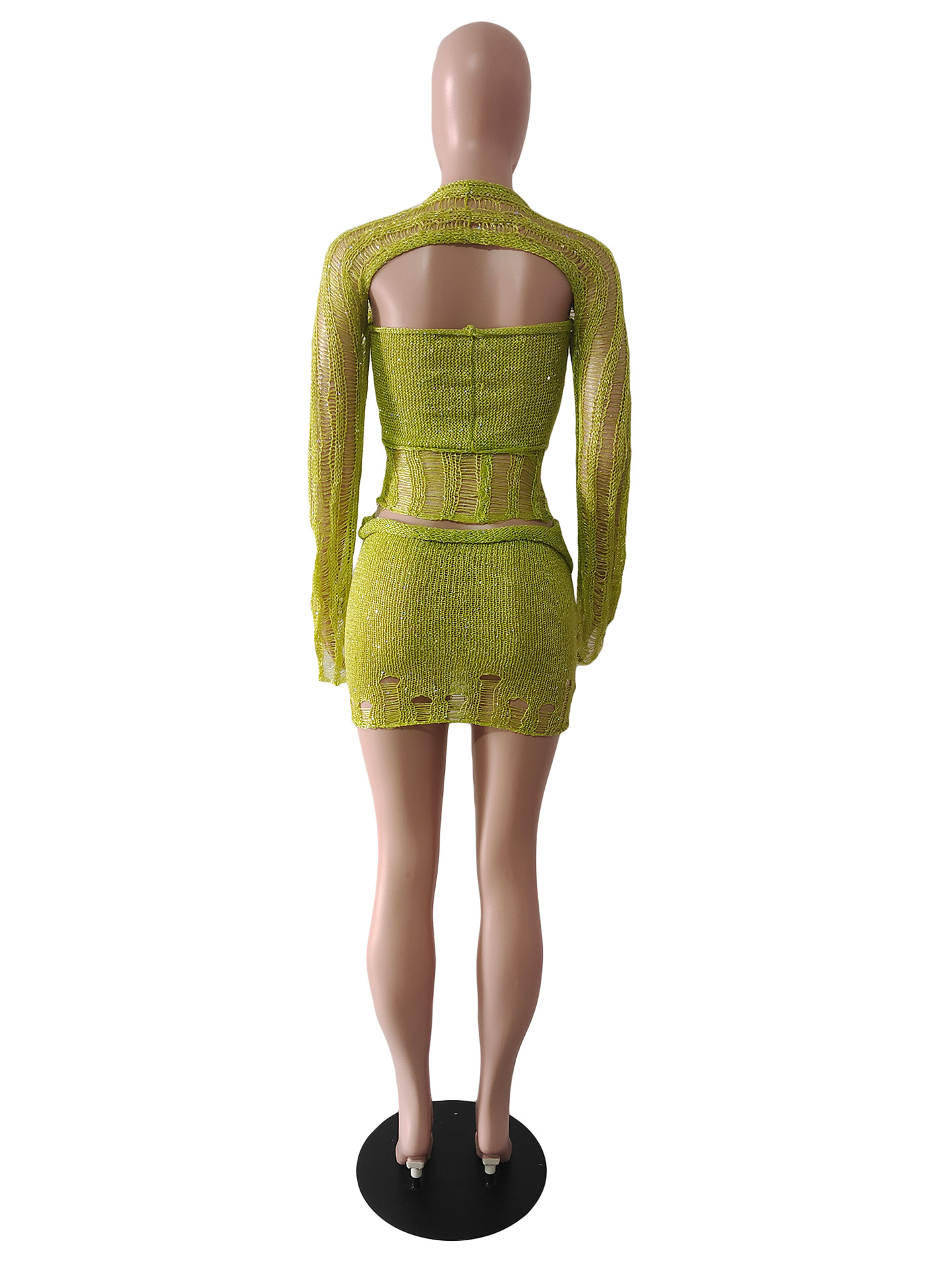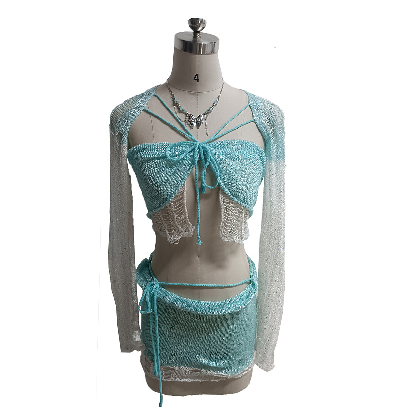CN0288 유럽 및 미국 여성 의류 2023 새로운 독립 스테이션 AliExpress 스팽글 니트 스웨터 3 피스 세트 세트