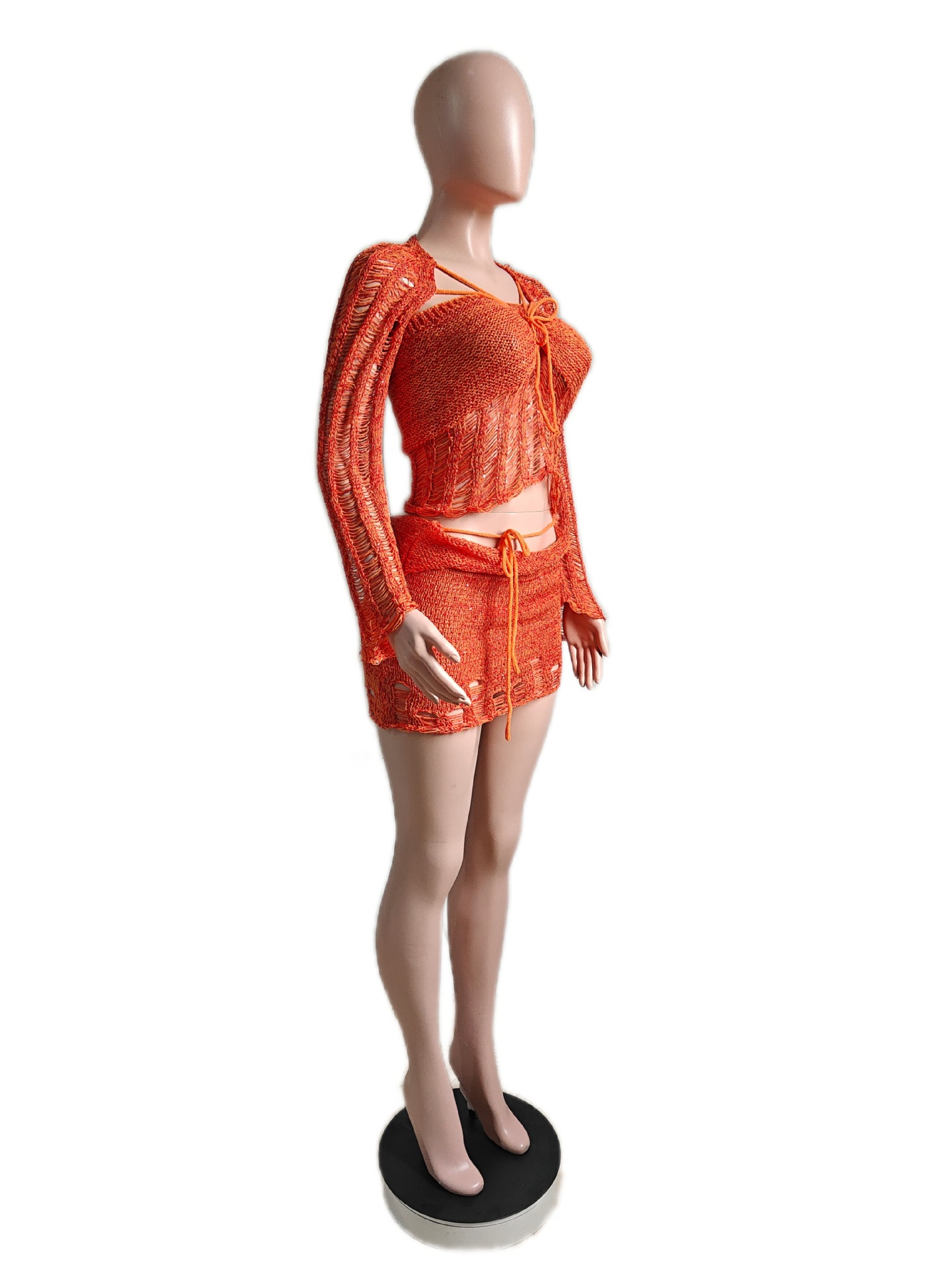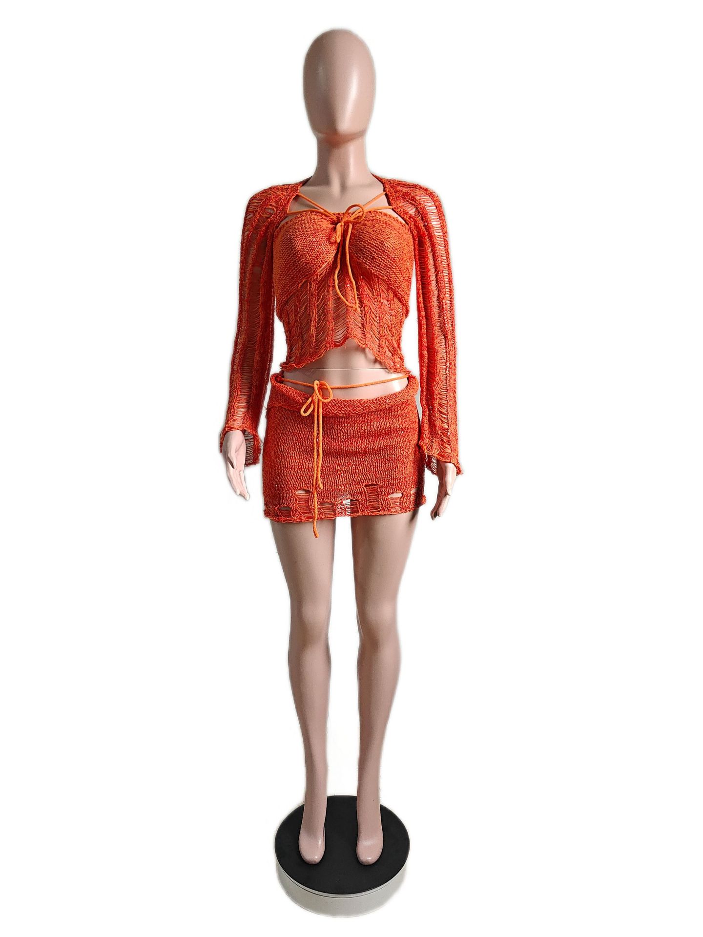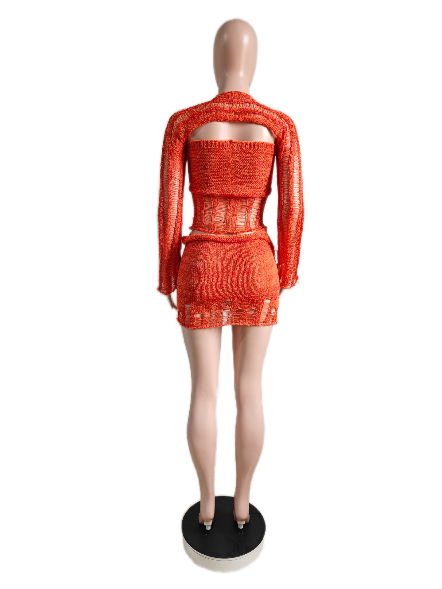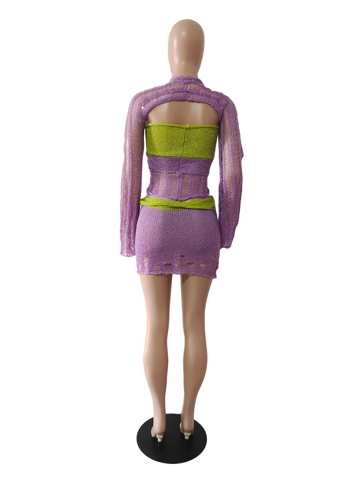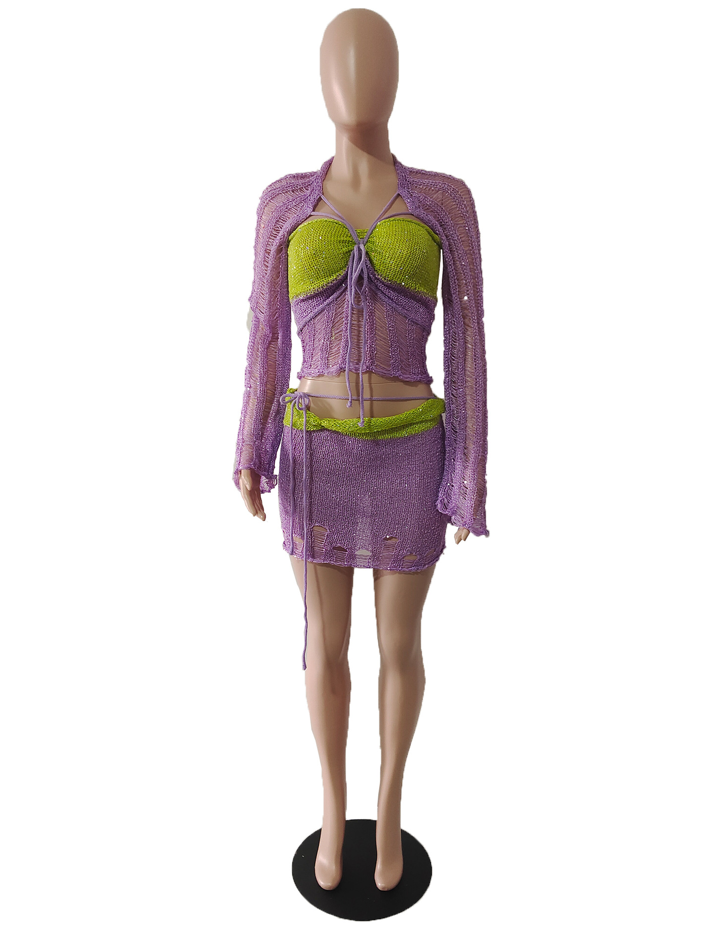 CN0288 유럽 및 미국 여성 의류 2023 새로운 독립 스테이션 AliExpress 스팽글 니트 스웨터 3 피스 세트 세트