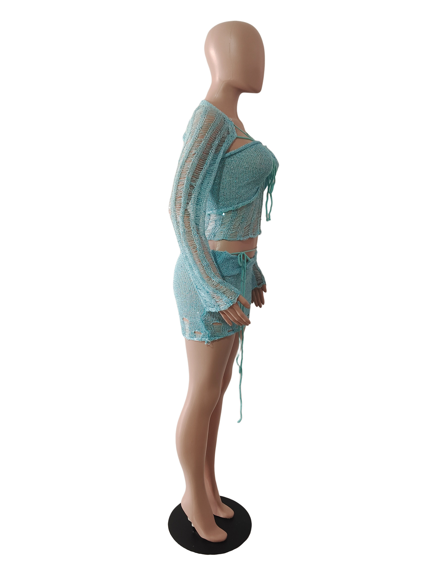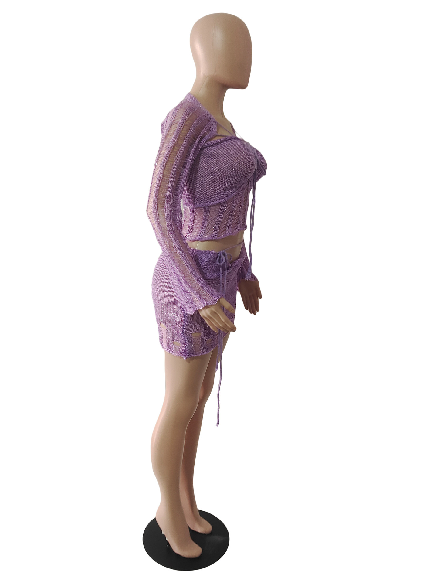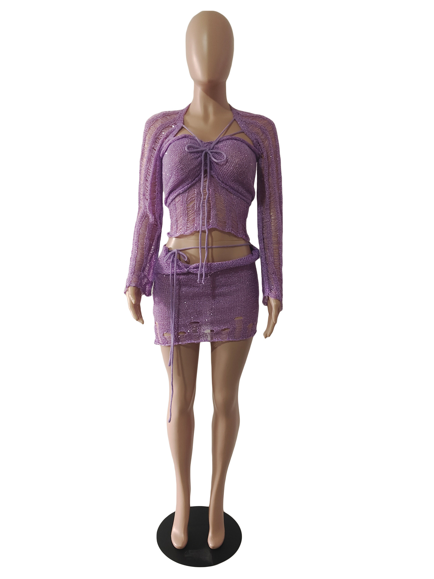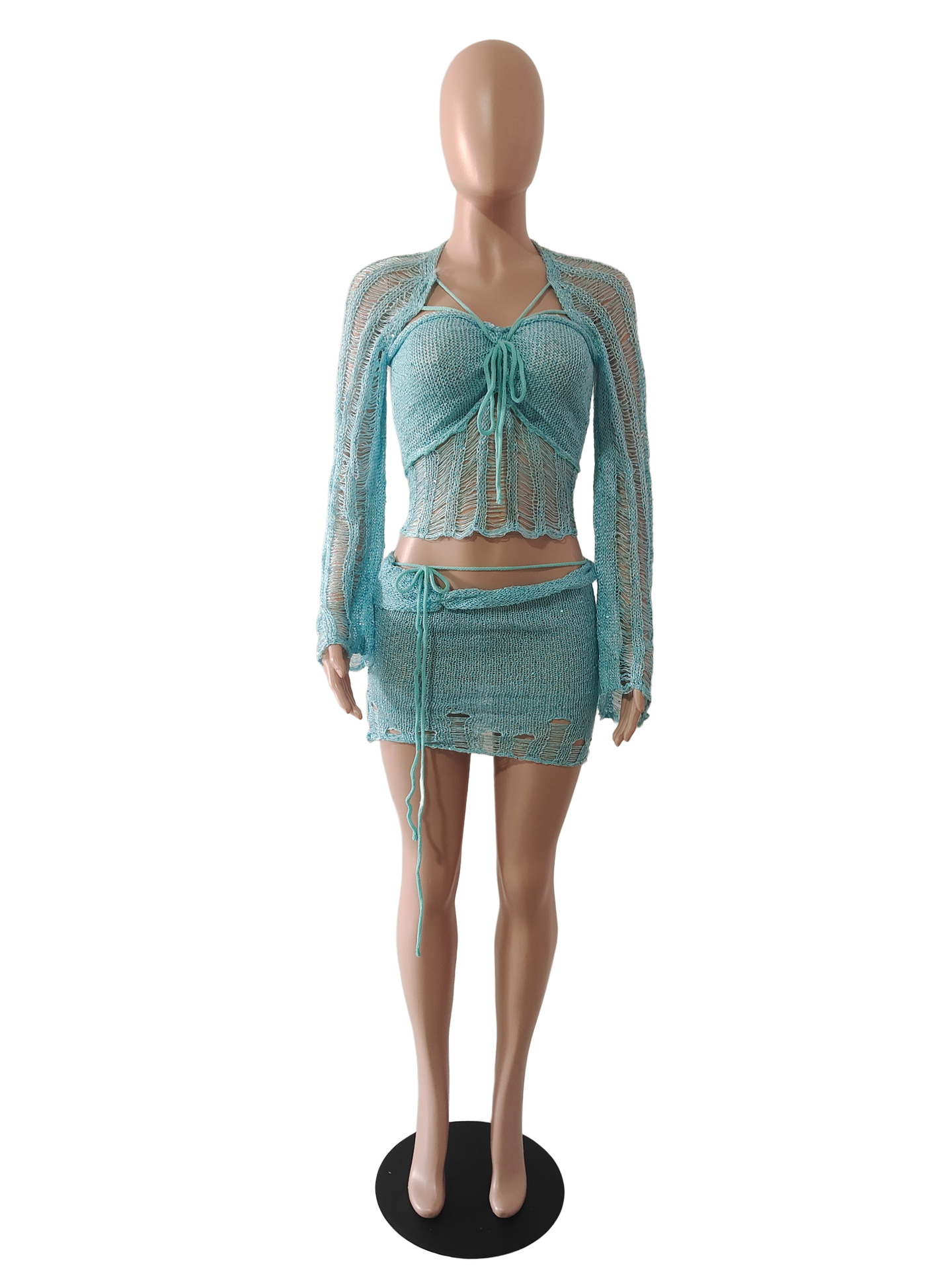 CN0288 유럽 및 미국 여성 의류 2023 새로운 독립 스테이션 AliExpress 스팽글 니트 스웨터 3 피스 세트 세트