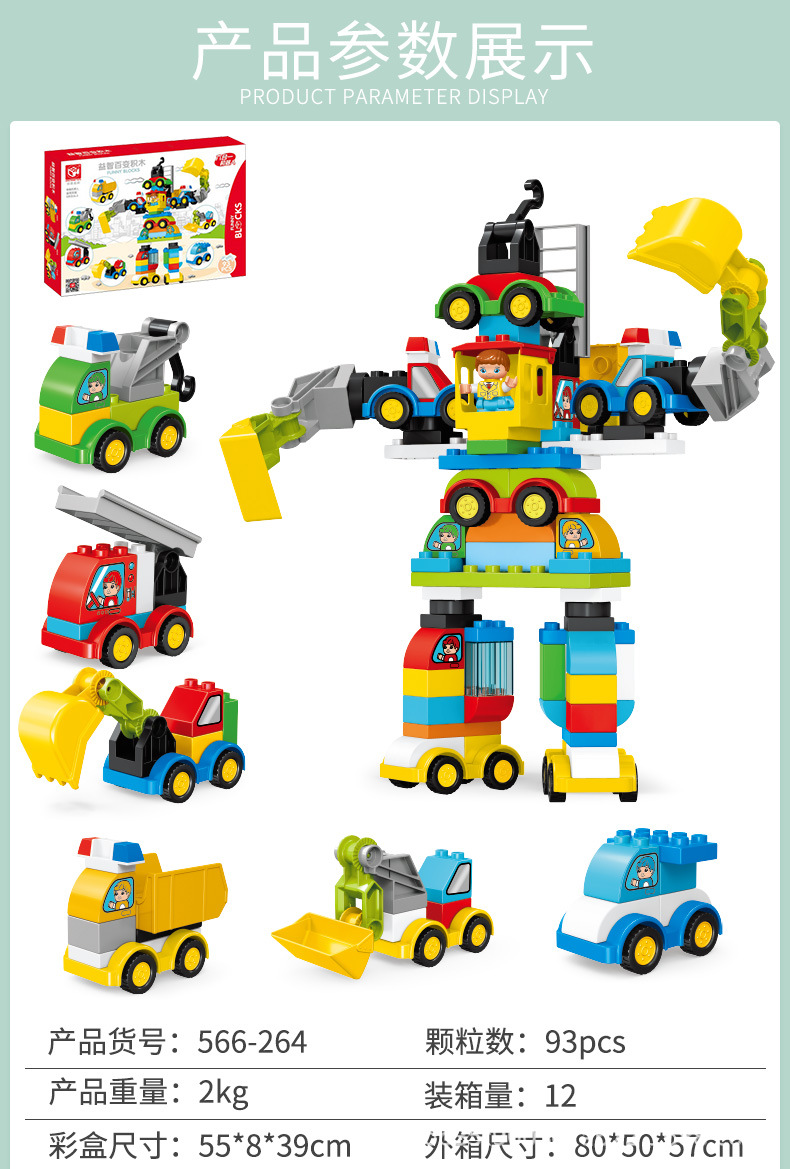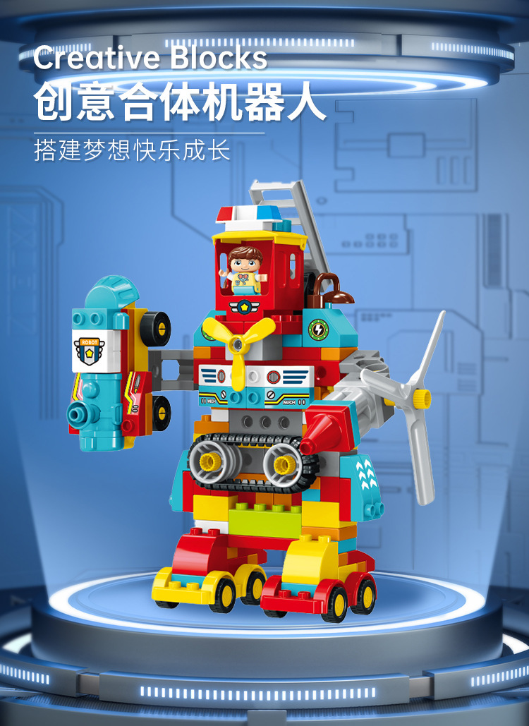 대형 입자 빌딩 블록 자동차, 가변 자동차, 엔지니어링 자동차, 로봇 조립 경찰차, 어린이 장난감, 국경 간 선물 상자와 호환 가능스토어 가기