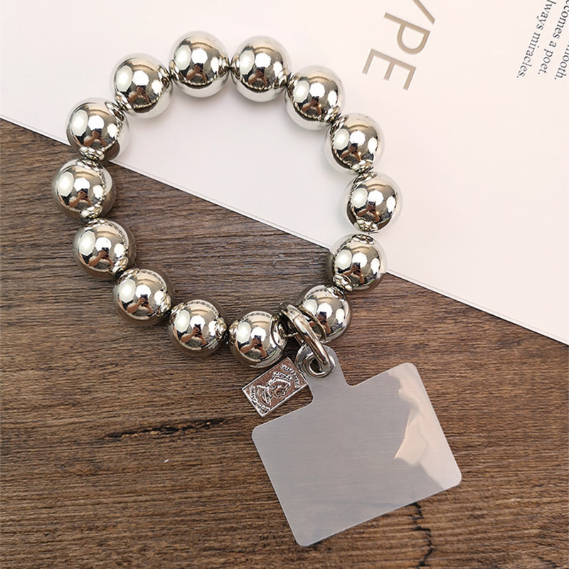 휴대 전화 끈 짧은 손목 구슬 펜던트 전기 도금 실버 대형 원형 구슬 핸드 헬드 체인 휴대 전화 케이스 범용 클립