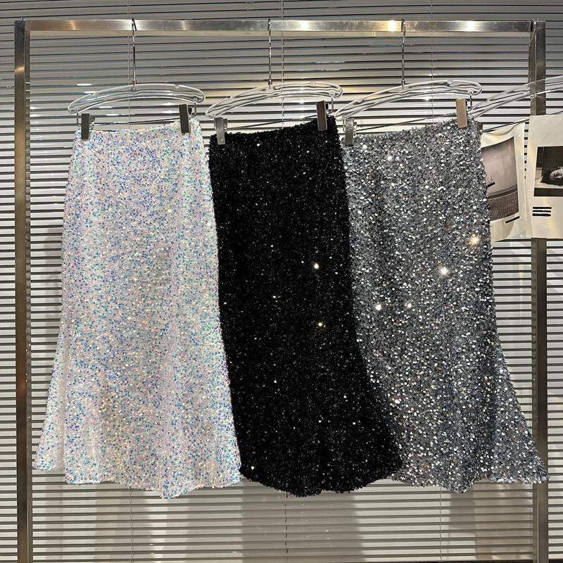 여자 봄과 가을 새로운 스타일 샤넬 스타일 스커트 한국 스타일 전체 길이 스팽글 중간 길이 유행 피쉬 테일 스커트 힙 스커트스토어 가기