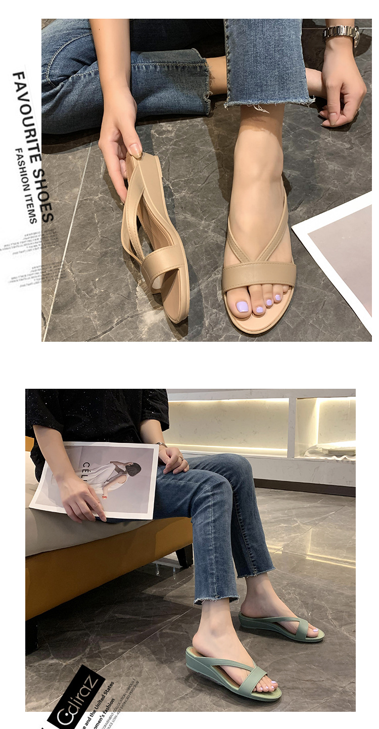 여성용 슬리퍼 2023 여름 새로운 반 단어 슬리퍼 패션 요정 바람 샌들 평평한 바닥 슬리퍼 머리카락 세대