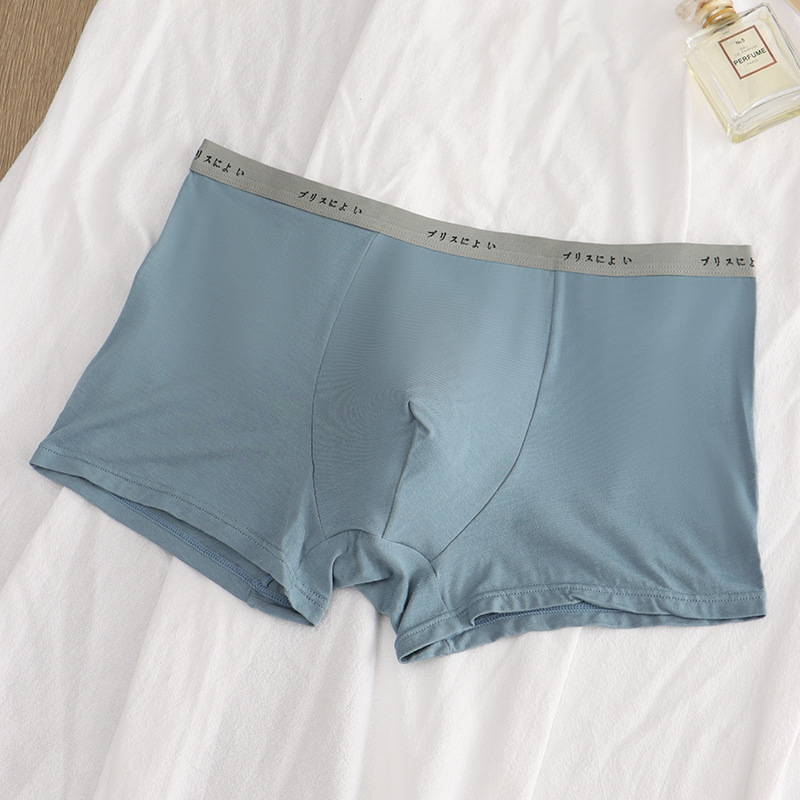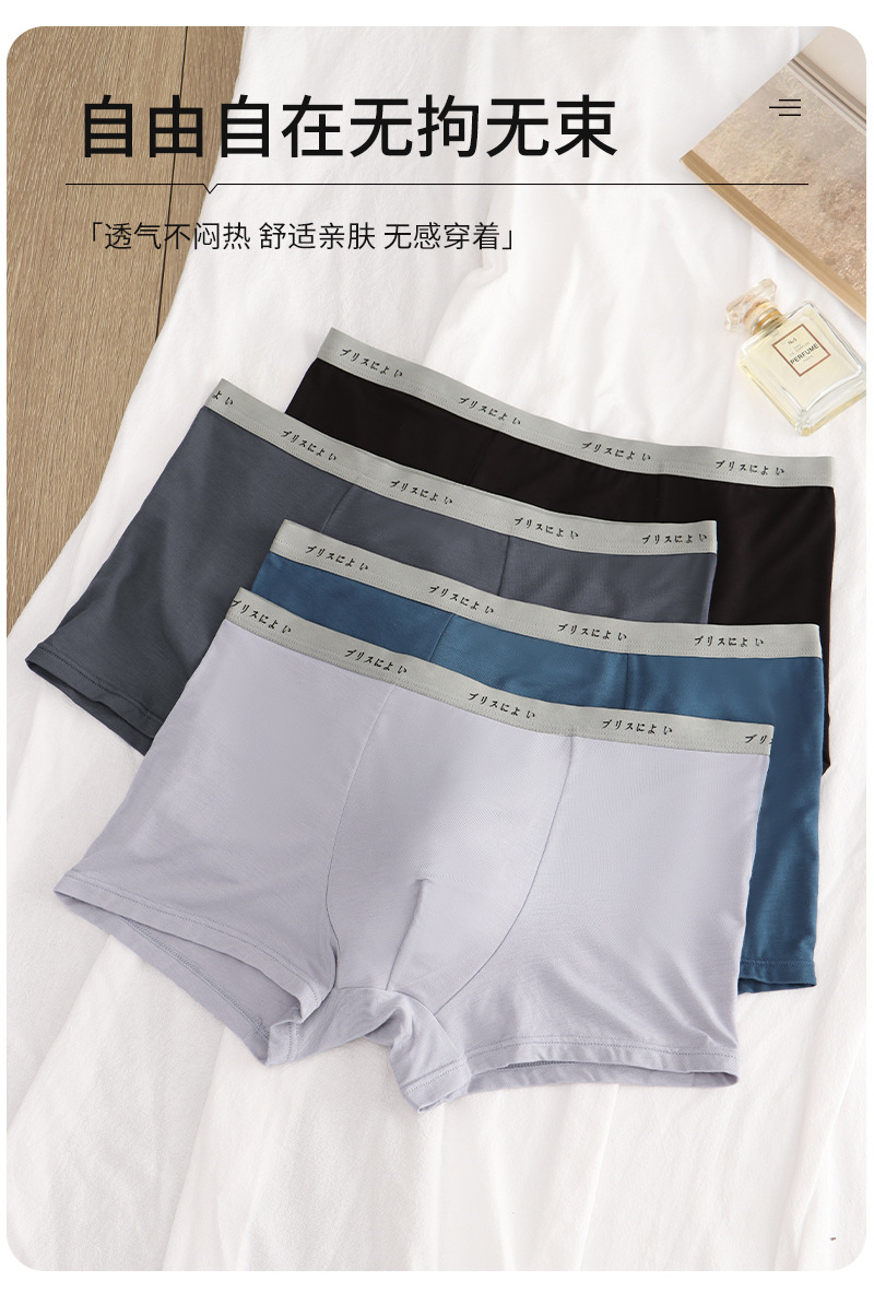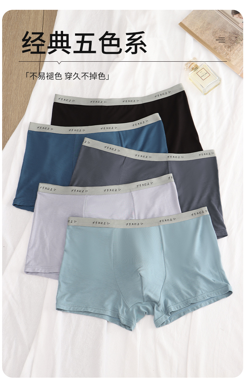 대외 무역 일본 남자의 속옷 모달 단색 플러스 사이즈 편안한 통기성 대비 색상 추적 없는 4 코너 중간 허리 복서 반바지