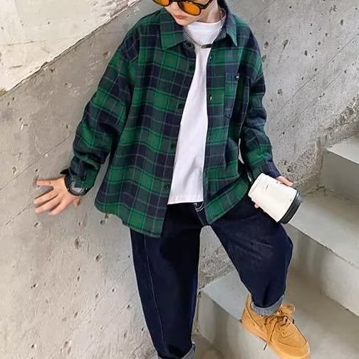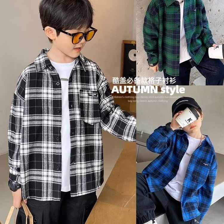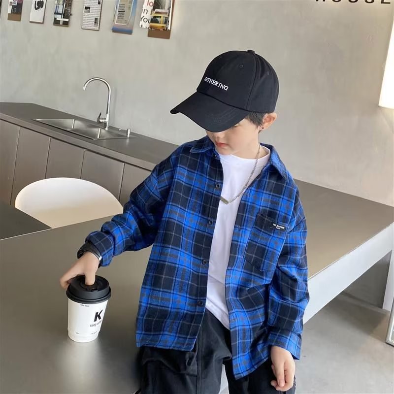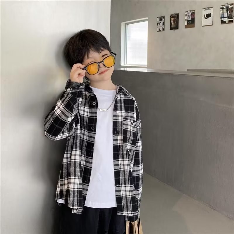 남아 면 셔츠 긴팔 2023 새로운 서양식 한국식 중대형 어린이 여름 남아 셔츠 탑 트렌디스토어 가기