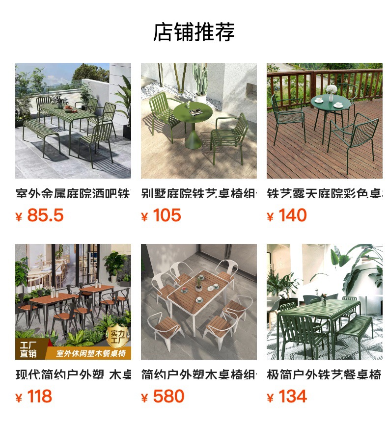 빌라 안뜰 철 테이블과 의자 조합 현대 간단한 야외 테이블과 의자 카페 밀크 티 숍 야외 식탁과 의자스토어 가기