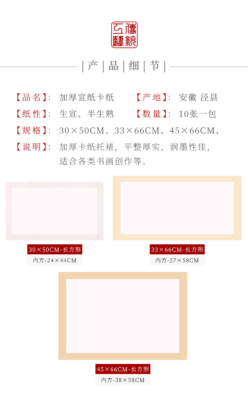 두꺼운 Xuan 종이 판지 렌즈 직사각형 중국 전통 회화 Sheng Xuan 반 성숙한 그림 빈 서예 작업 종이 도매스토어 가기