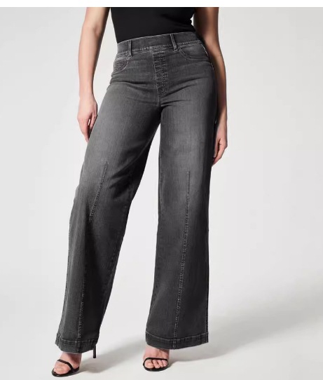 유럽과 미국의 2024 새로운 솔리드 컬러 여성 캐주얼 패션 느슨한 올 매치 마이크로 탄성 편안한 스트레이트 미드 웨이스트 데님 바지