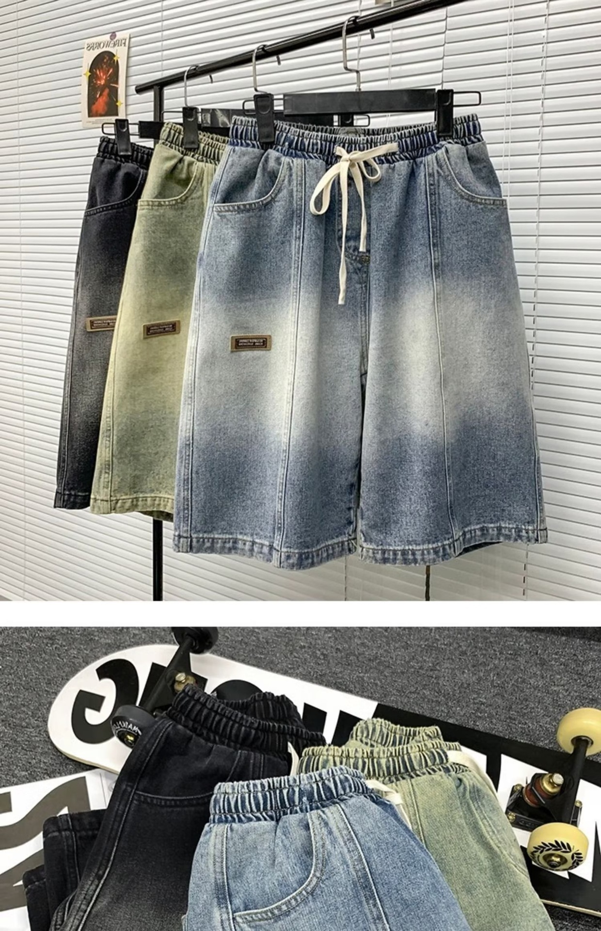 아메리칸 스타일 패션 브랜드 분위기 옐로우 클레이 데님 반바지 남자와 여자의 여름 튀김 거리 잘 생긴 느슨한 캐주얼 바지스토어 가기