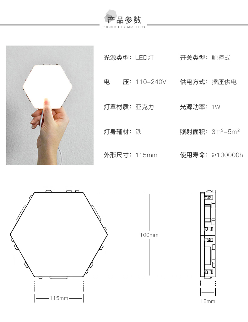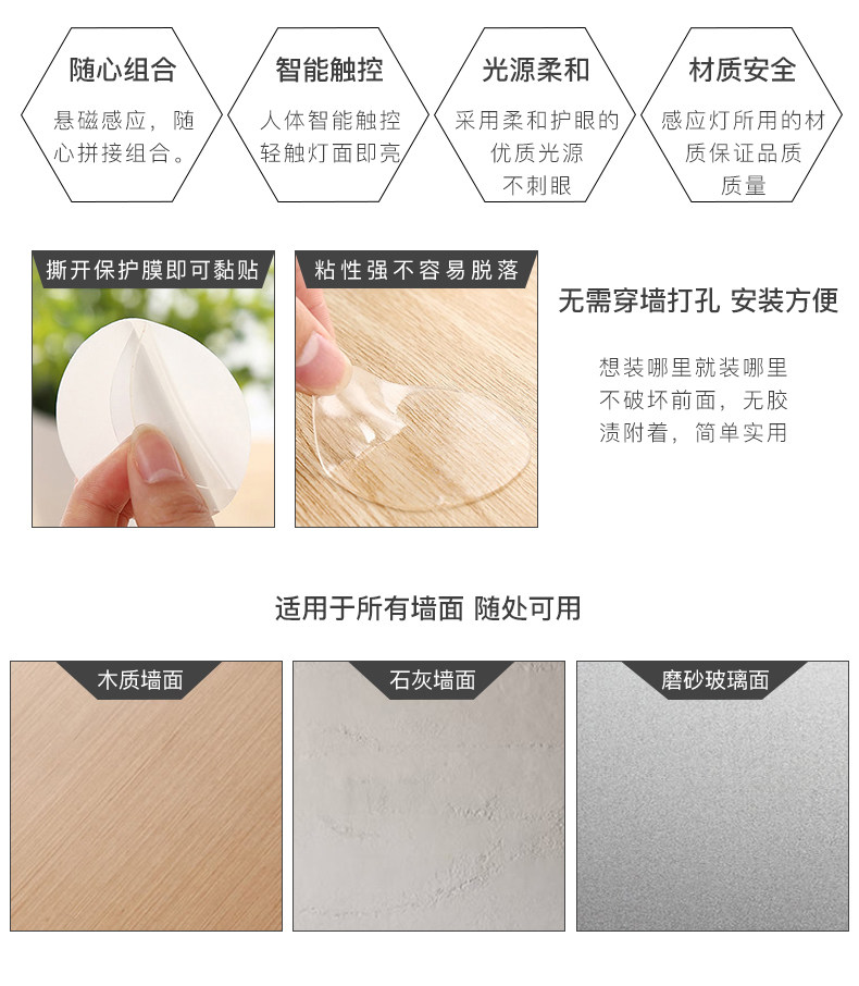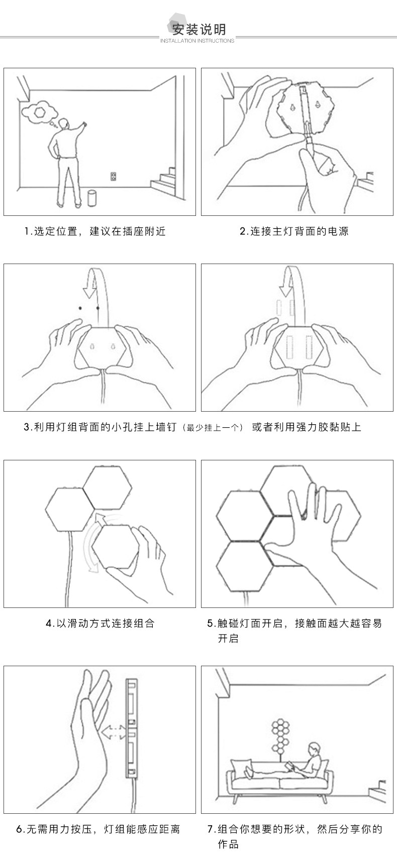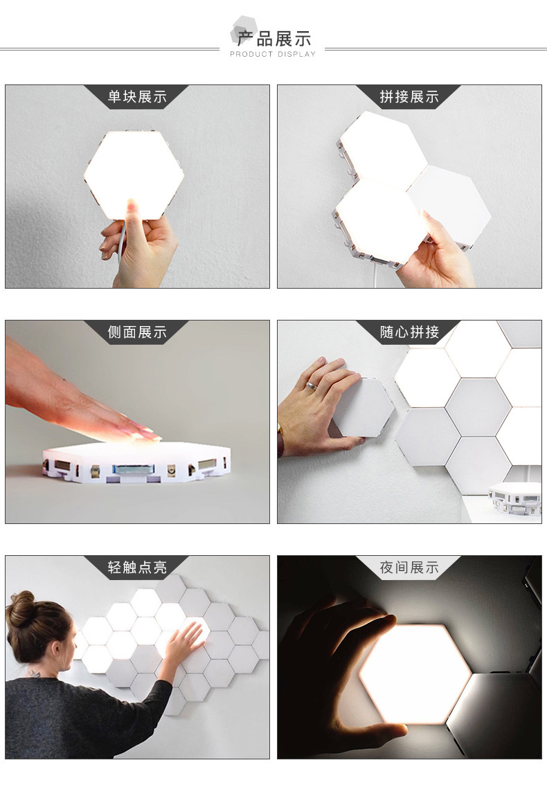 스마트 LED 스티칭 스티칭 터치 사각형 모듈 센서 벽 조명 육각형 거실 침실 머리맡 조합 야간 조명