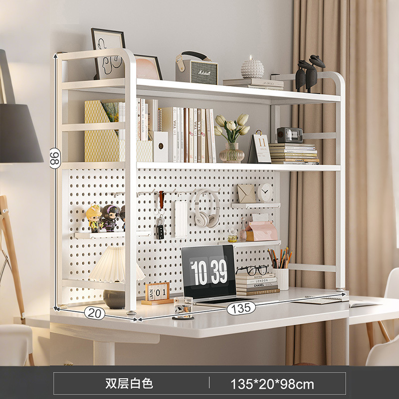 • 흰색 이중층 구멍 보드 보관 랙★책장 135cm