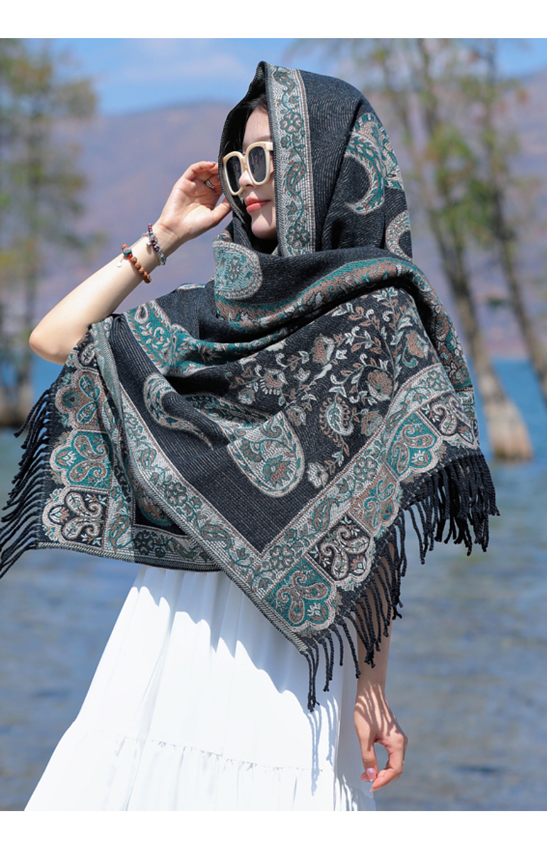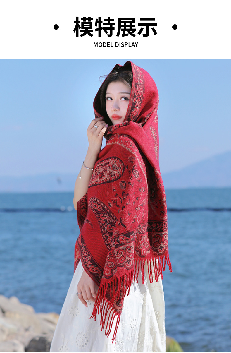 윈난 티베트 칭하이 호수 차 카드 여행 자외선 차단제 스카프 스카프 여성용 레트로 레드 에스닉 스타일 술 숄 여름