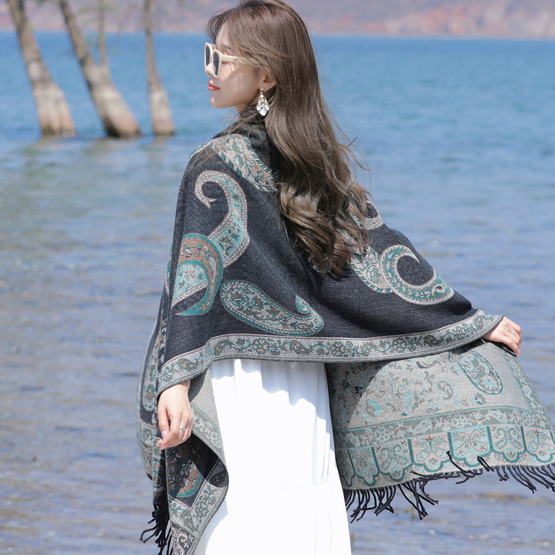 윈난 티베트 칭하이 호수 차 카드 여행 자외선 차단제 스카프 스카프 여성용 레트로 레드 에스닉 스타일 술 숄 여름스토어 가기