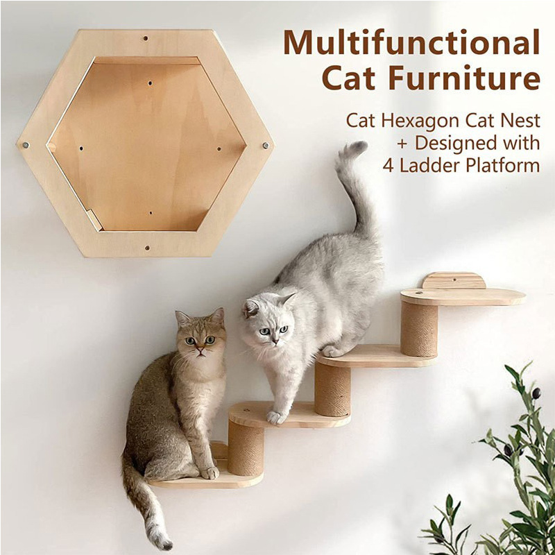 나무 고양이 클라이밍 프레임, 벽걸이형 고양이 선반, 고양이 둥지, 원목 사이잘 로프, 거실 장식, 재고 있음