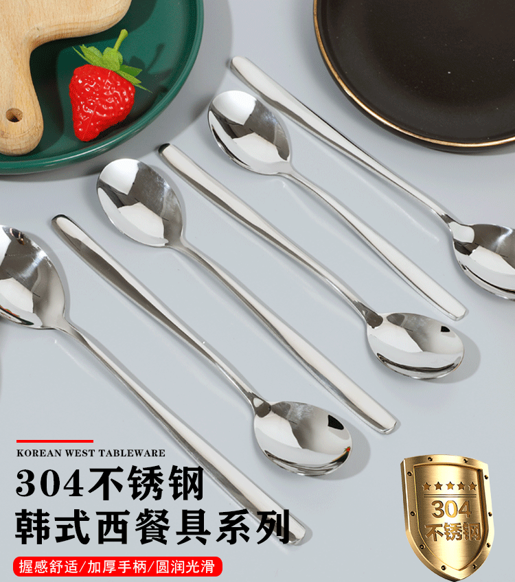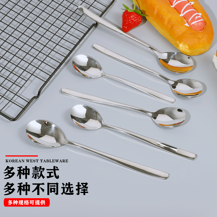 304 스테인레스 스푼 한국 디저트 스푼 포크 커피 롱 핸들 믹싱 스푼 가정 먹는 스푼 식기 도매