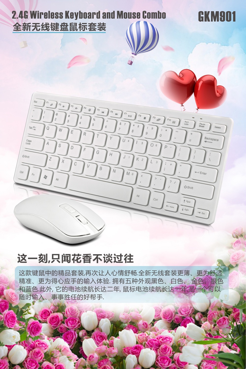 GKM901 초콜릿 무선 키패드 마우스 세트 78 키 데스크탑 노트북 다기능 2.4g 미니 키