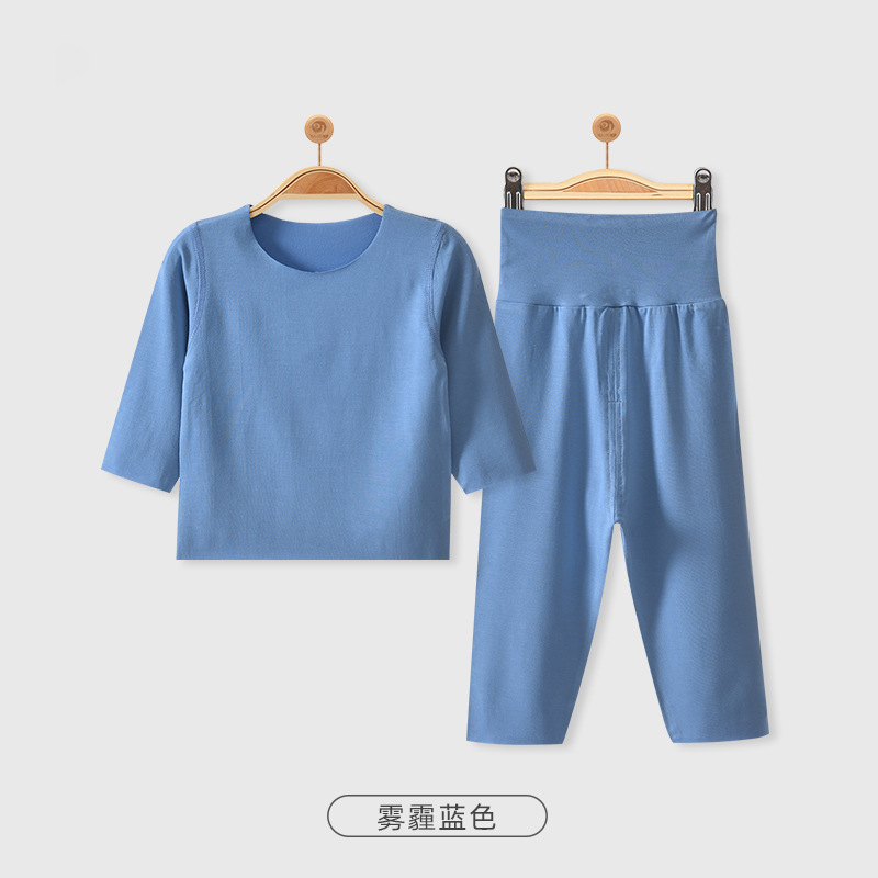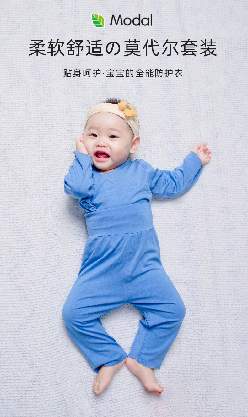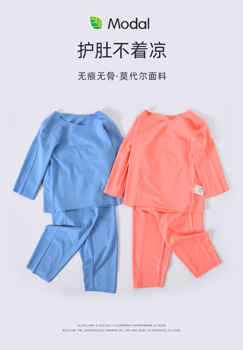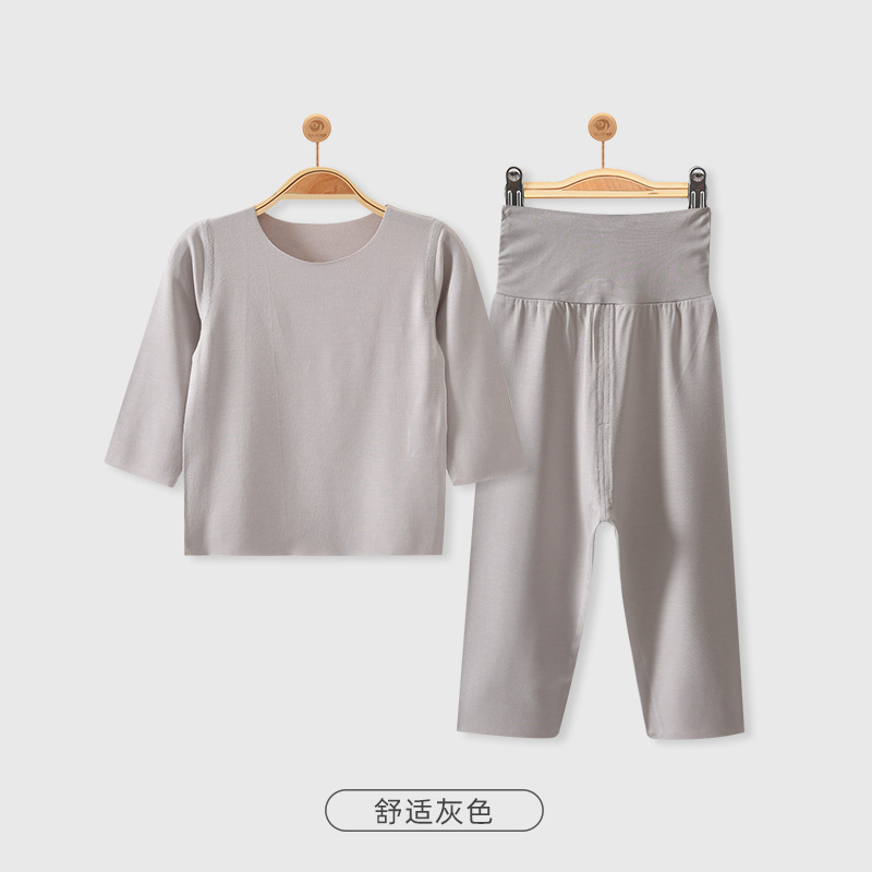모달 아기 잠옷 가을 옷 봄과 가을 따뜻한 가을 옷 가을 바지 분할 세트 아기 옷 하이 웨이스트 배꼽 보호