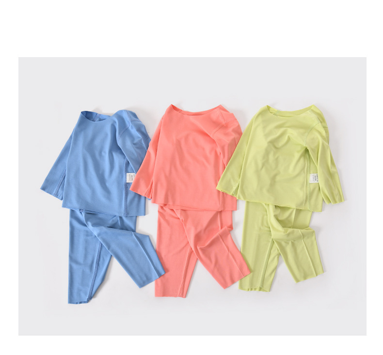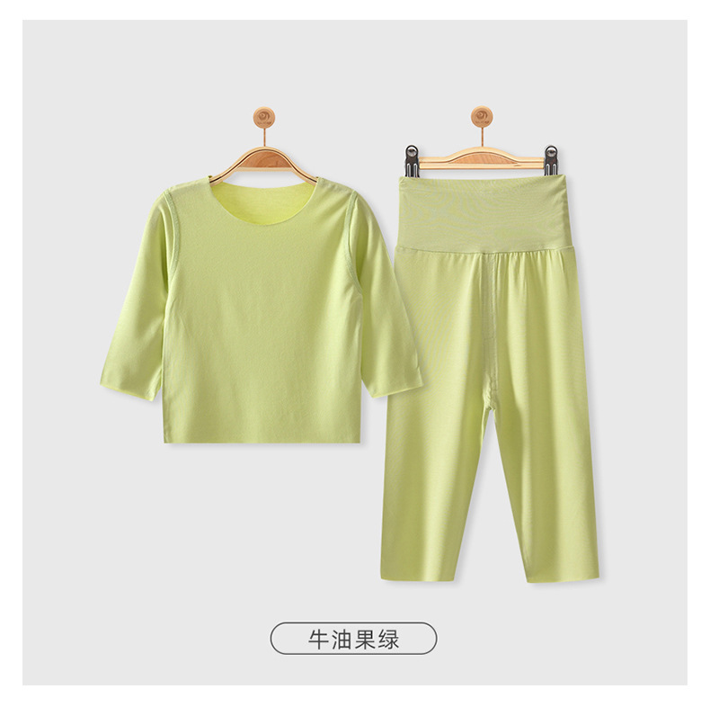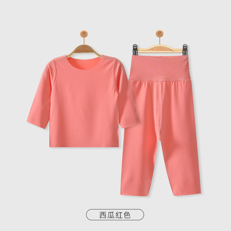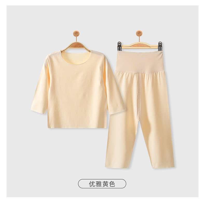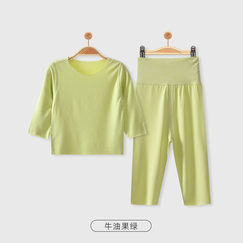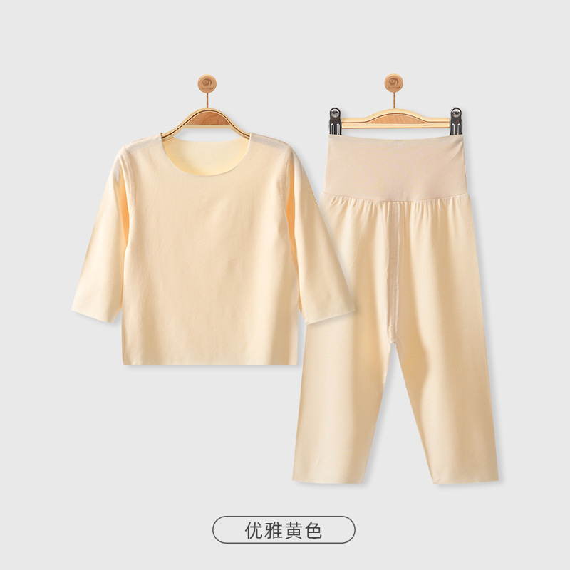 모달 아기 잠옷 가을 옷 봄과 가을 따뜻한 가을 옷 가을 바지 분할 세트 아기 옷 하이 웨이스트 배꼽 보호