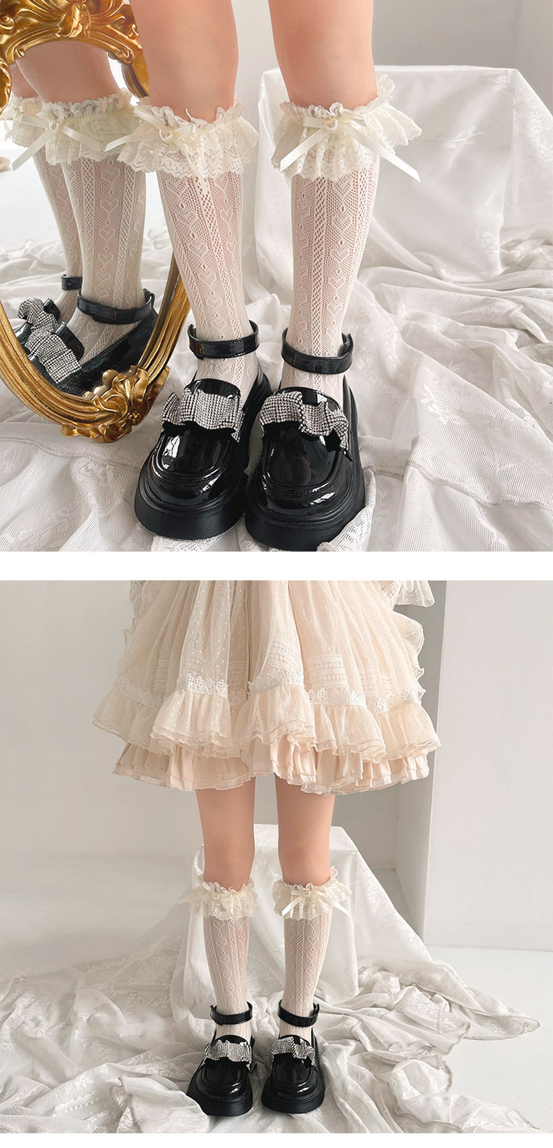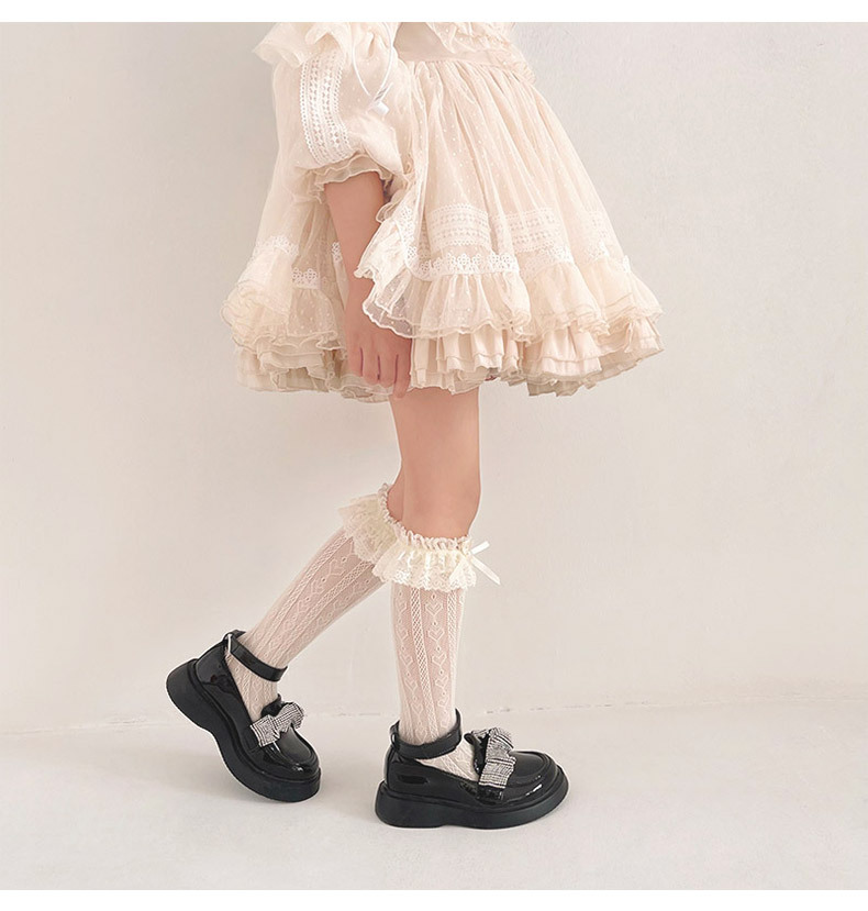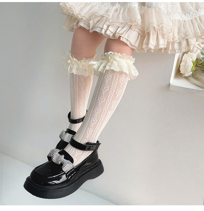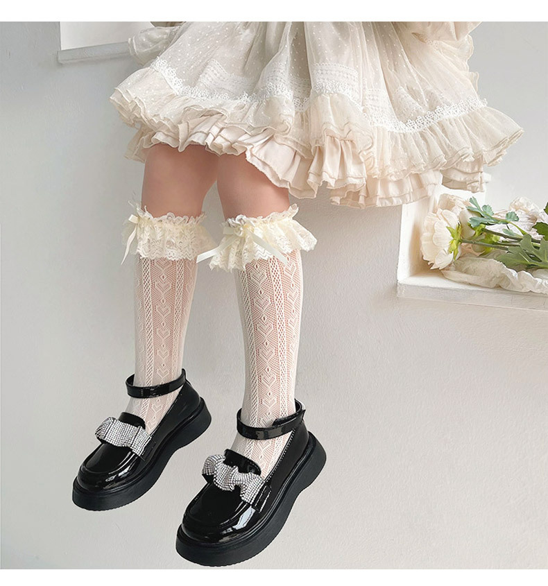 핫문 일본식 새로운 사랑 활 비즈 여성 어린이 아기 귀여운 레이스 미드 튜브 스택 양말