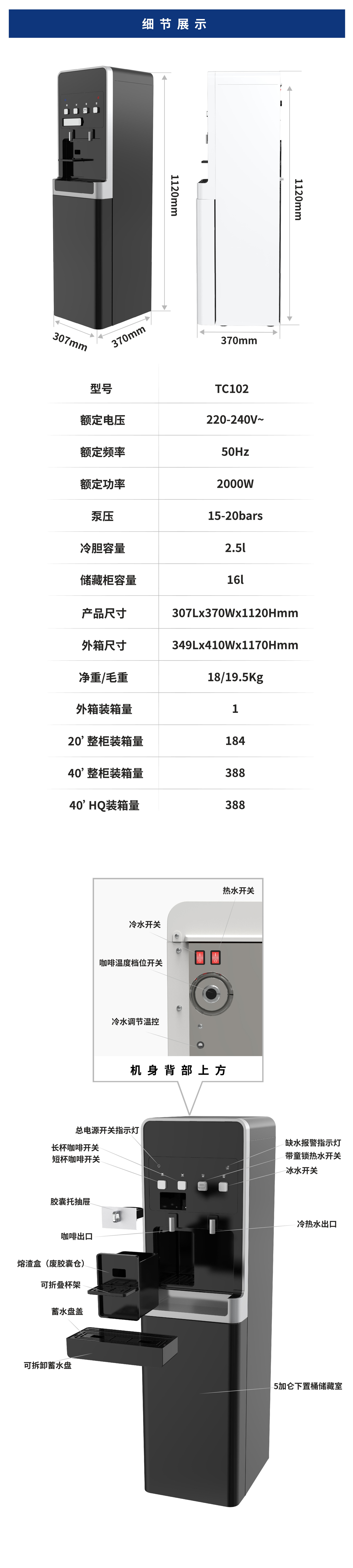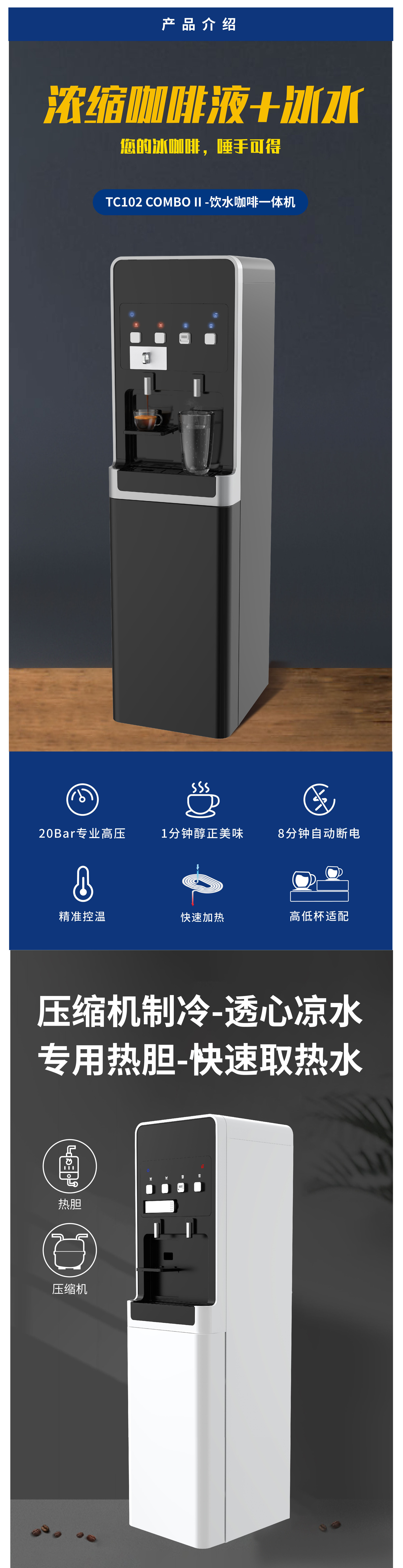 跨境货源意式咖啡机热水冷水二合一多功能胶囊咖啡机,饮水机咖啡机一体机