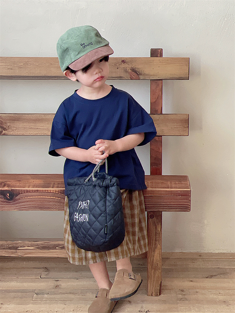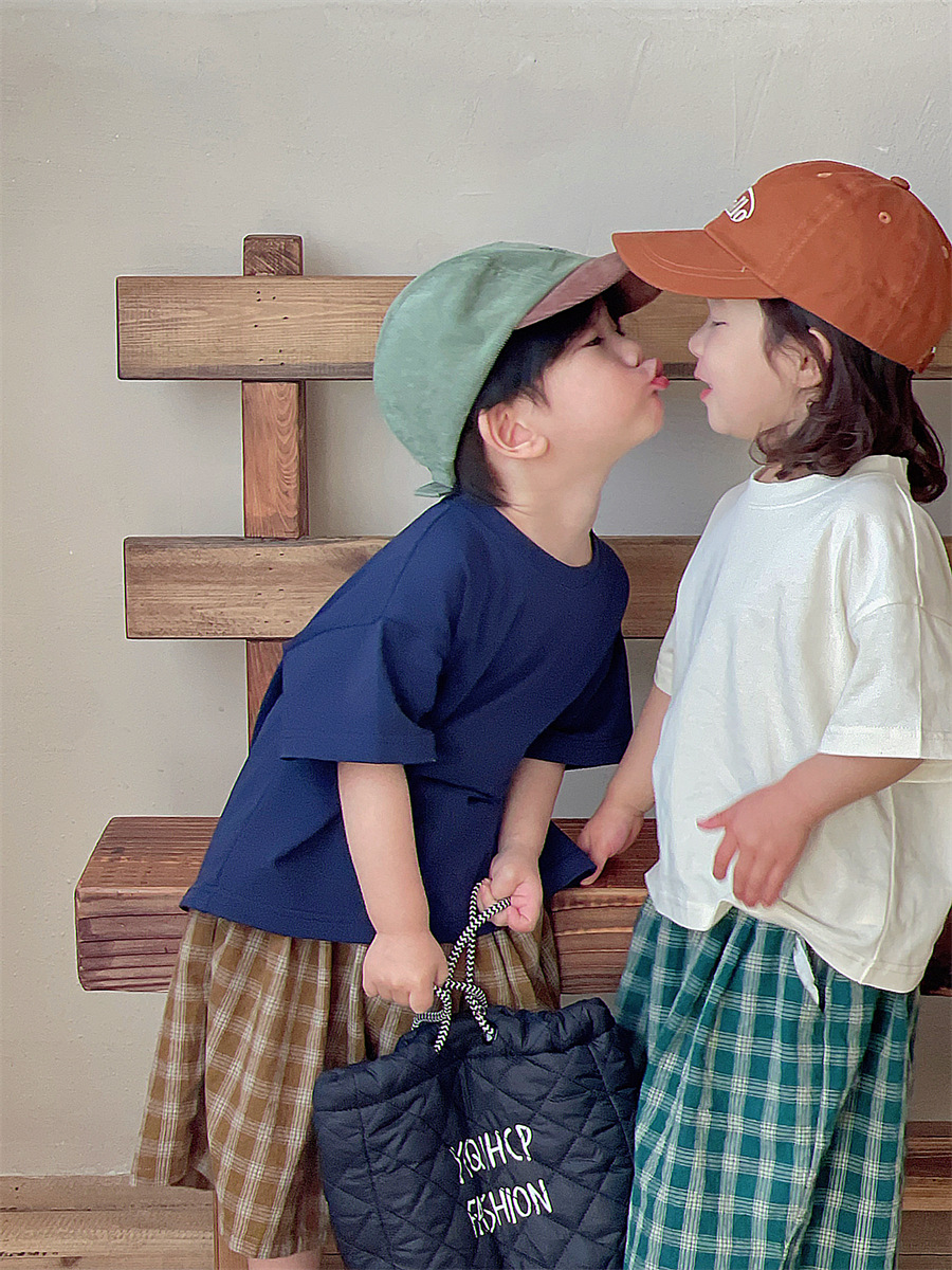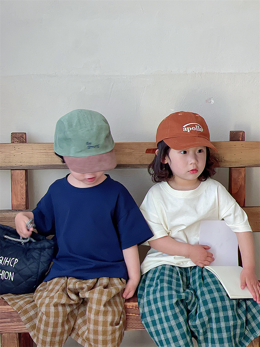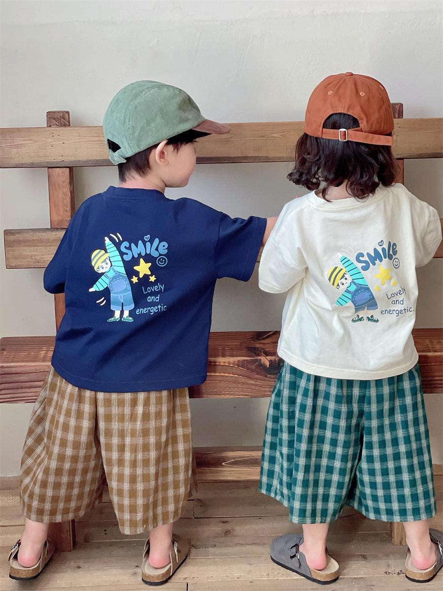Jiaye 새 여름 옷 2025 어린이 면화 백 프린트 반팔 티셔츠 남성과 여성 아기 만화 반팔 셔츠