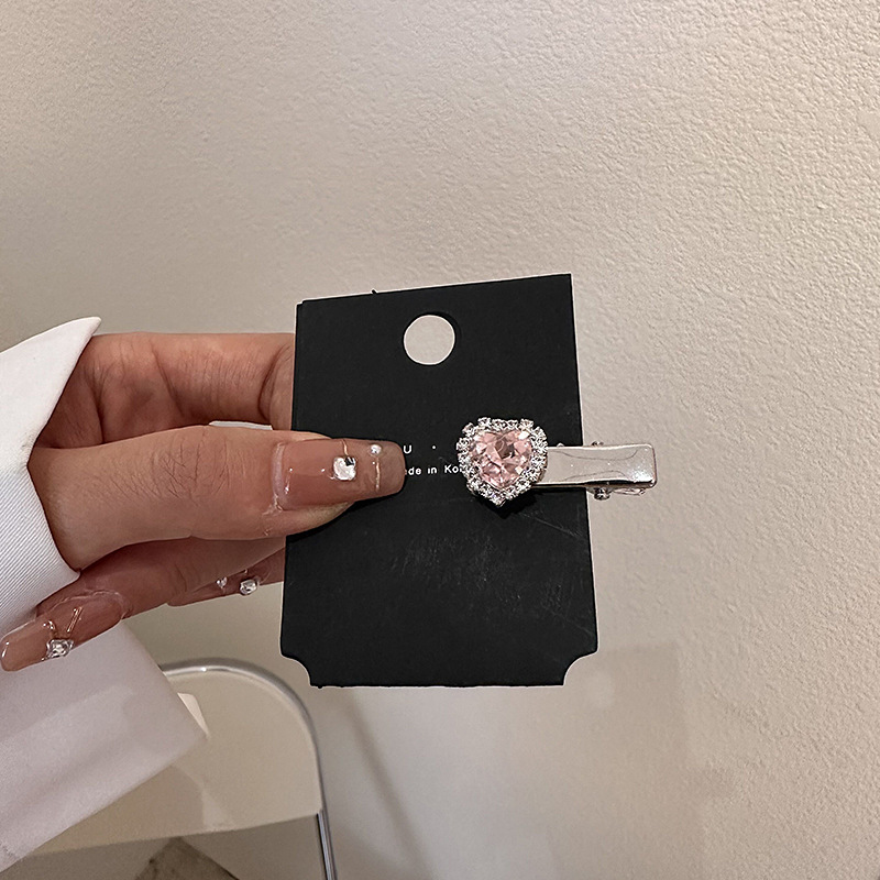 핑크 러브 라인 석 헤어 클립 여자 리그 스타일 앞머리 클립 핫 걸 사이드 클립 헤어 클립 이마 작은 클립 헤어 액세서리 2023 여름