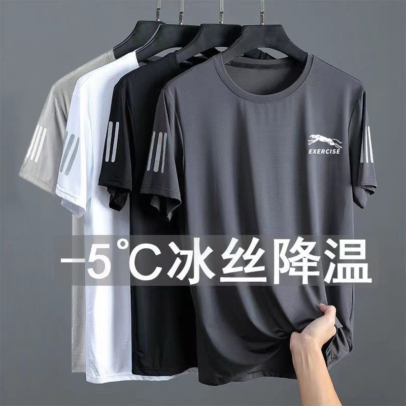 공장 직접 티셔츠 다용도 인쇄 여름 아이스 실크 메쉬 슬림 얇은 라운드 넥 셔츠 남성용 속건 반팔 티셔츠스토어 가기