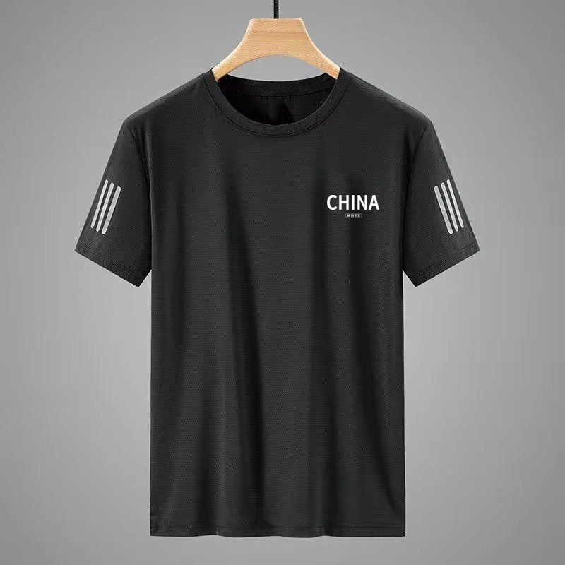 공장 직접 티셔츠 다용도 인쇄 여름 아이스 실크 메쉬 슬림 얇은 라운드 넥 셔츠 남성용 속건 반팔 티셔츠