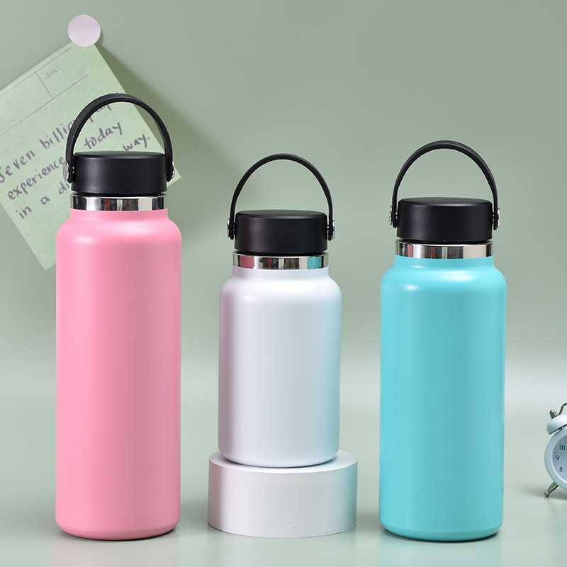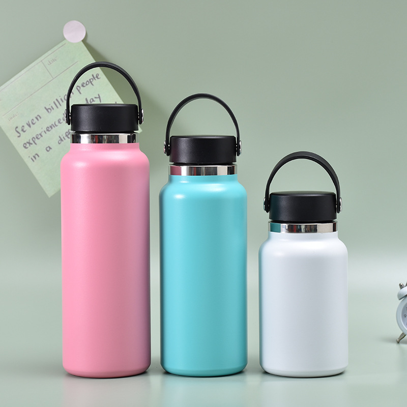 크로스 보더 아메리칸 대형 입 손잡이 스포츠 물 컵 스테인레스 스틸 진공 등산 여행 물병 대용량 보온병 컵스토어 가기