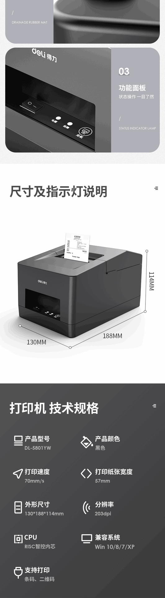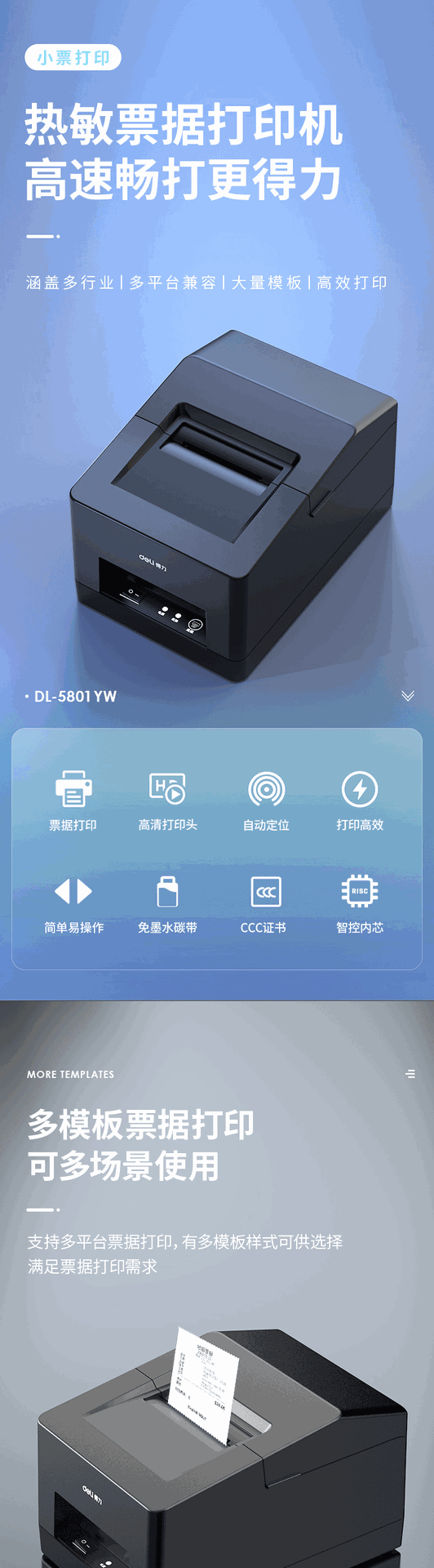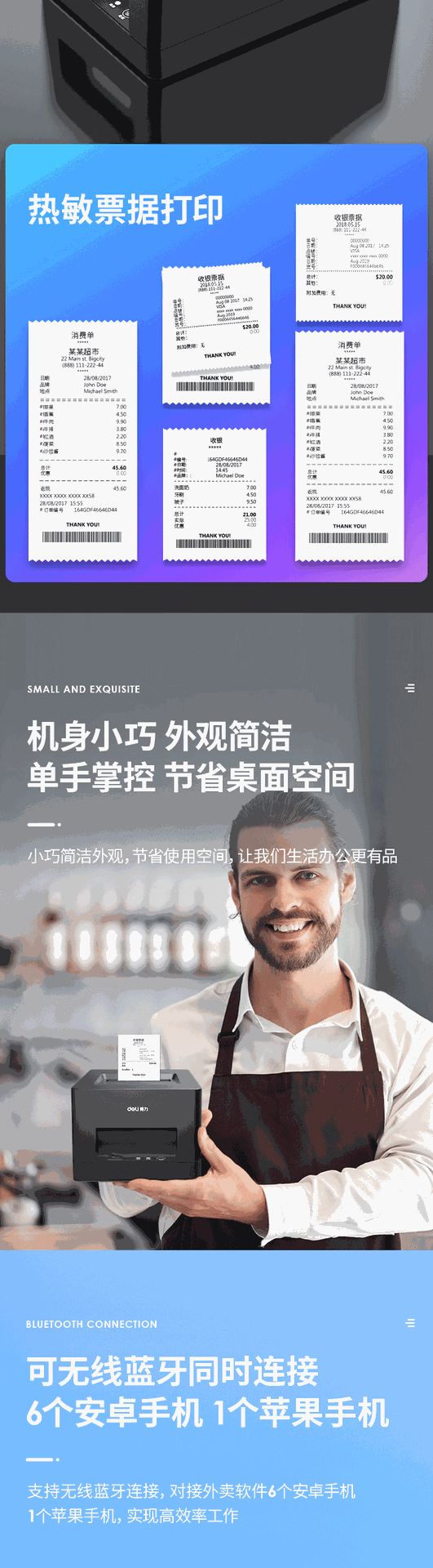 델리 DL-5801YW 블루투스 열 영수증 프린터 테이크 아웃 프린터 Meituan 배고픈? 영수증 지원스토어 가기