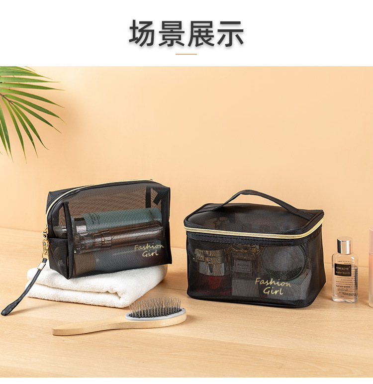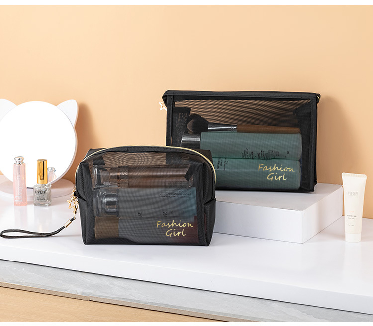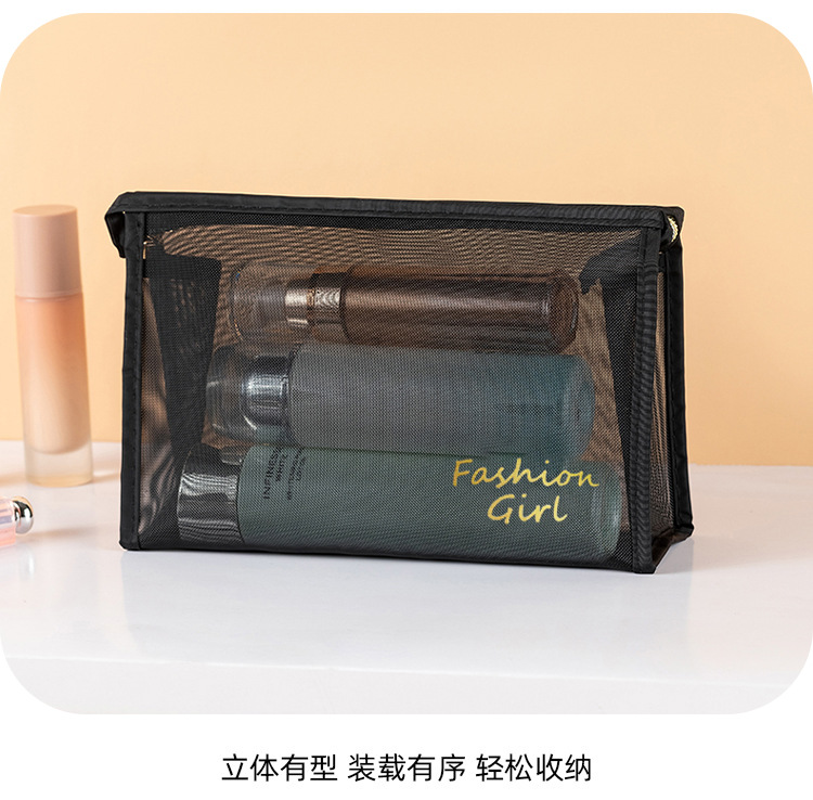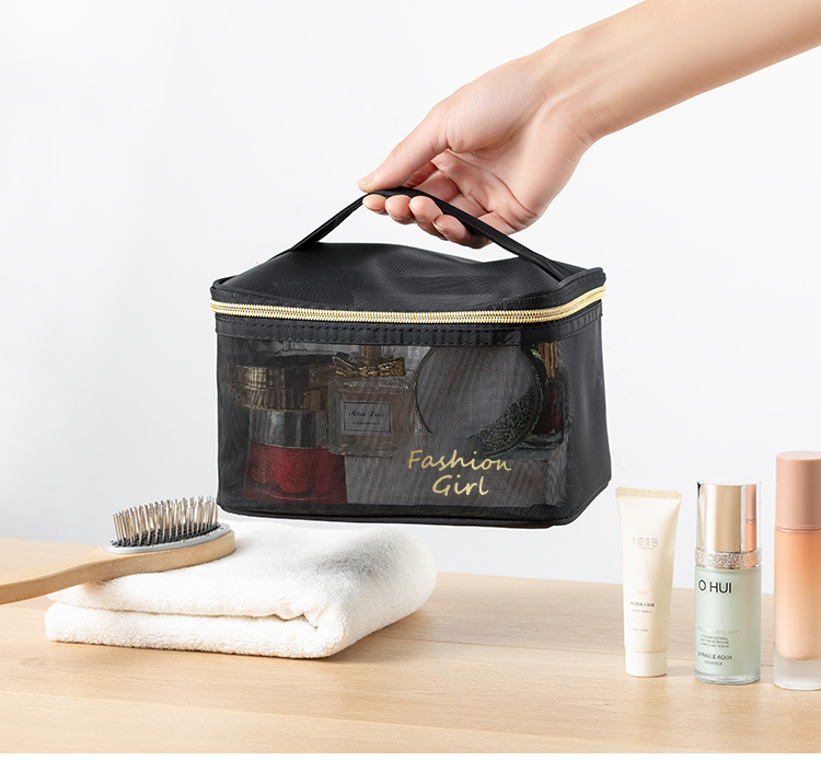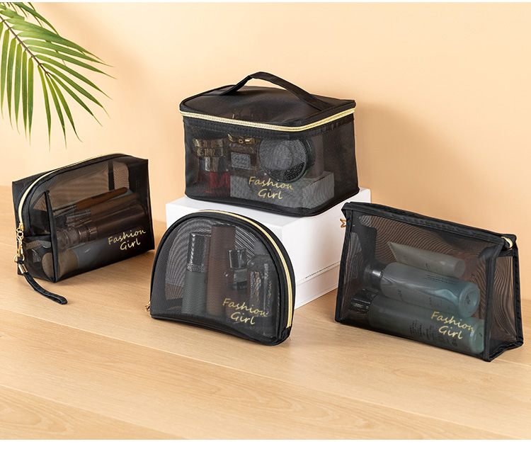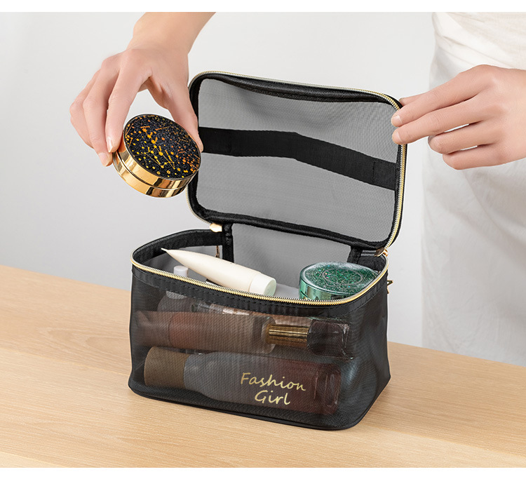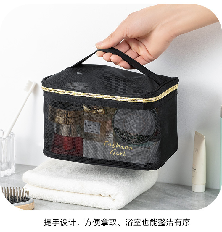 새로운 메쉬 화장품 가방 여행 화장품 보관 가방 대용량 휴대용 투명 메쉬 세면도구 가방 세트 로고스토어 가기