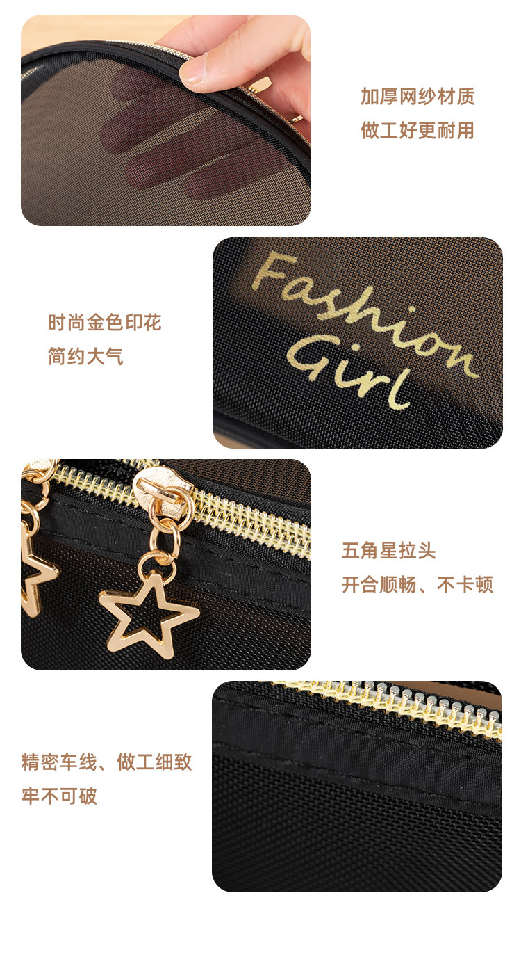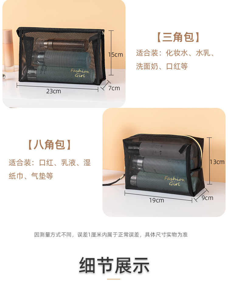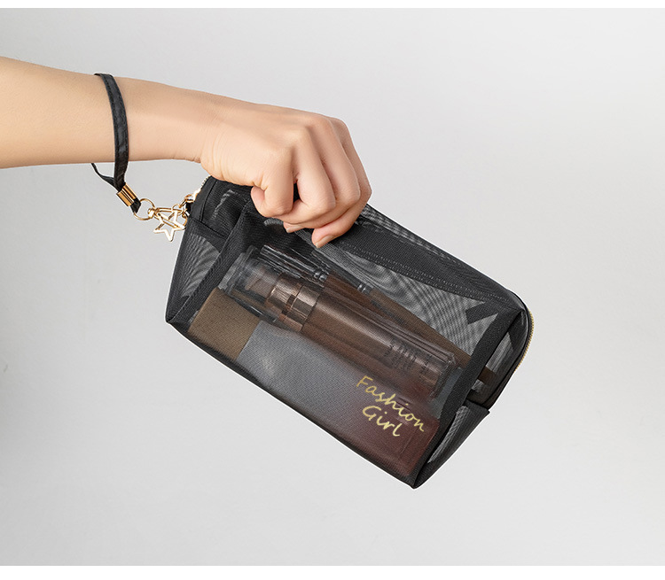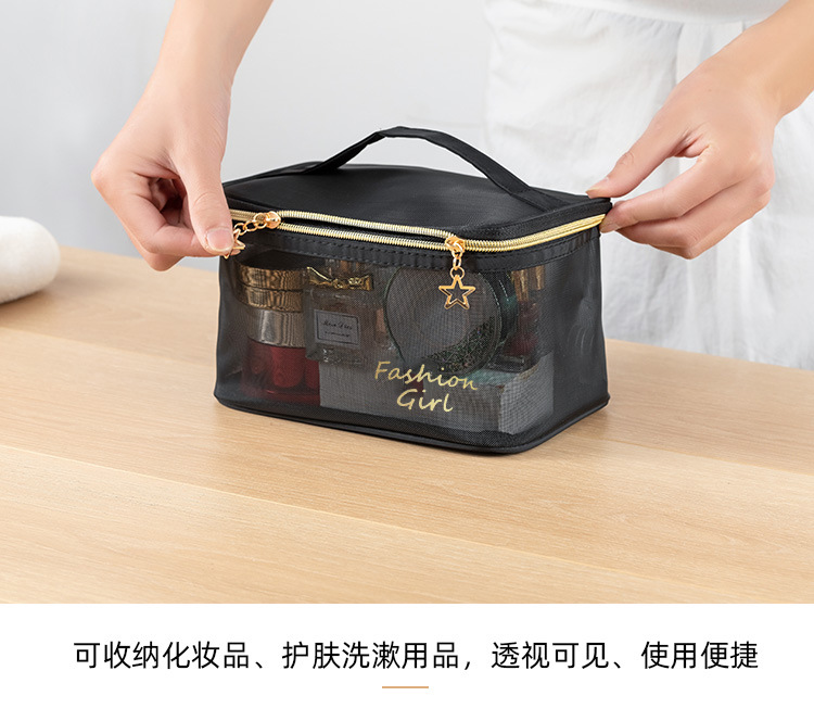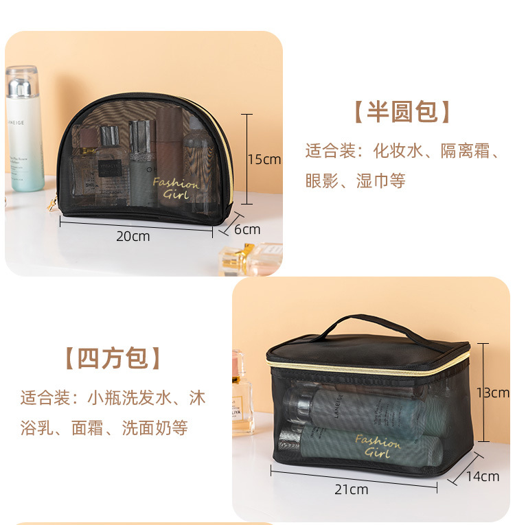 새로운 메쉬 화장품 가방 여행 화장품 보관 가방 대용량 휴대용 투명 메쉬 세면도구 가방 세트 로고스토어 가기