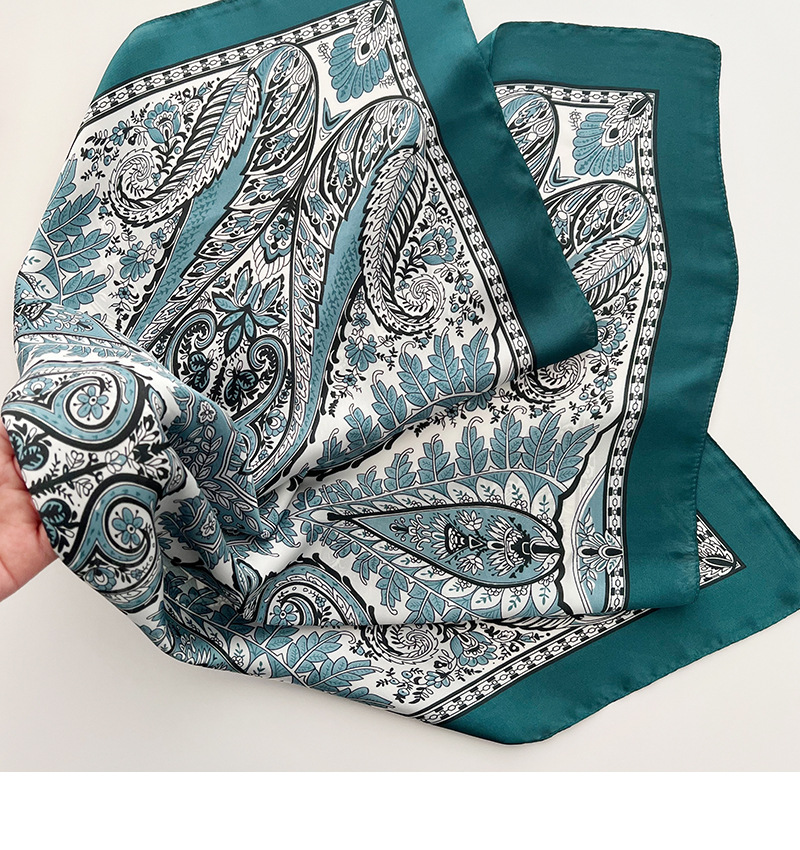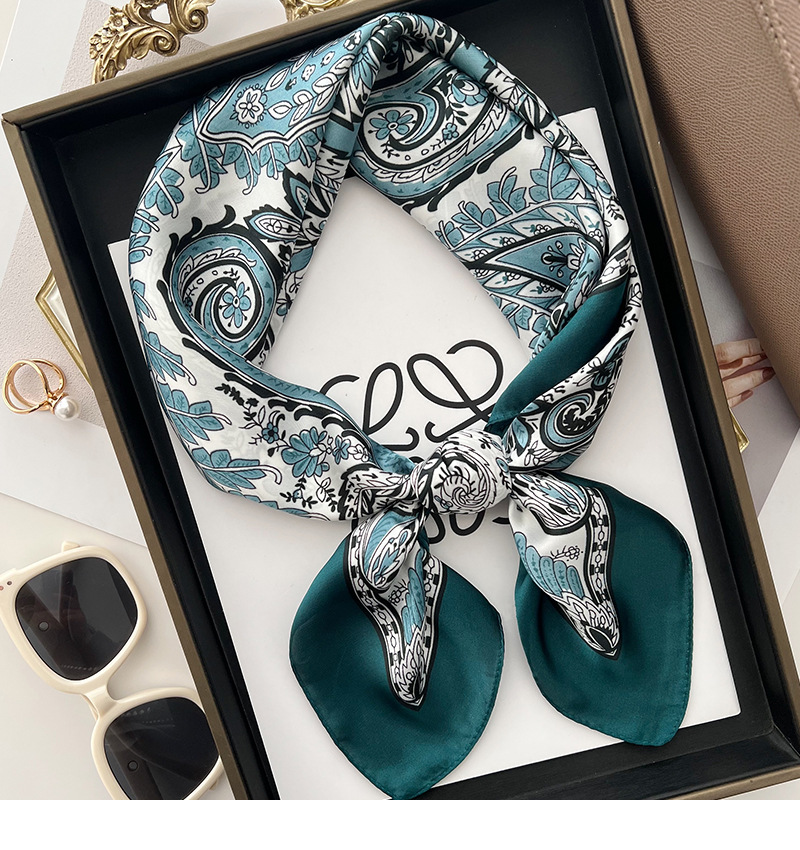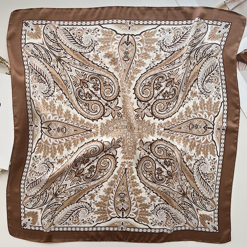 캐슈 플라워 스몰 스퀘어 스카프 예술적 레트로 실크 스카프 여성용 깃털 인쇄 태양 보호 목 스카프 매칭 셔츠 얇은 스카프