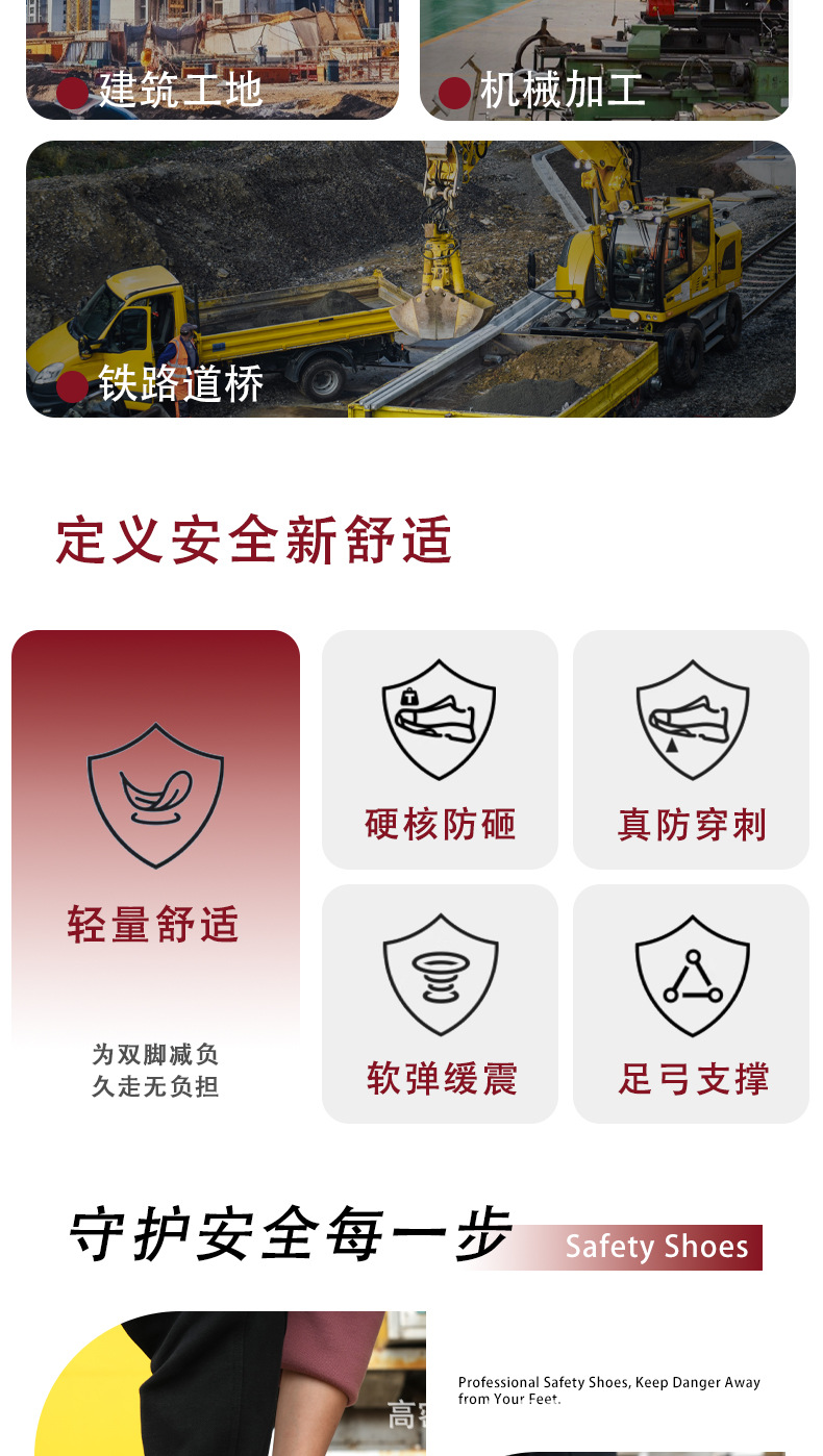 건설현장 작업화는 충격 방지 및 펑크 방지 기능이 있으며, 여름철 안전화는 통기성이 좋고 가볍고 발이 피곤하지 않으며, 미끄럼 방지 및 내마모성이 있는 작업화입니다.