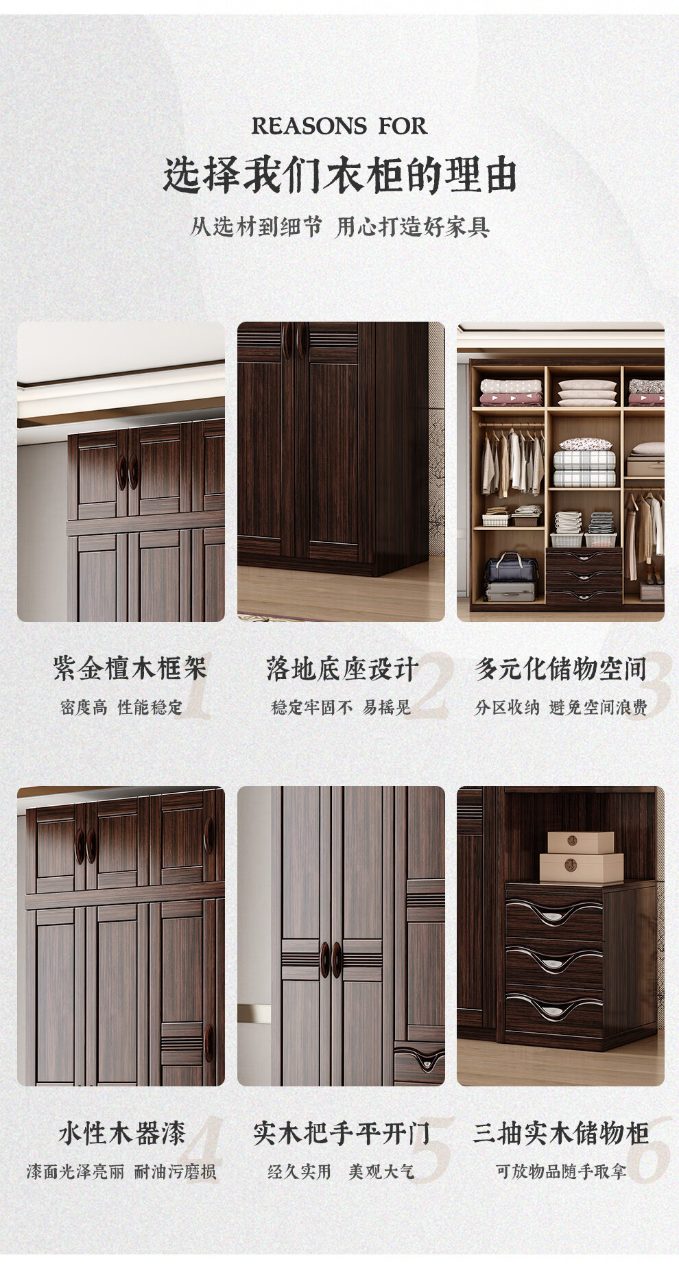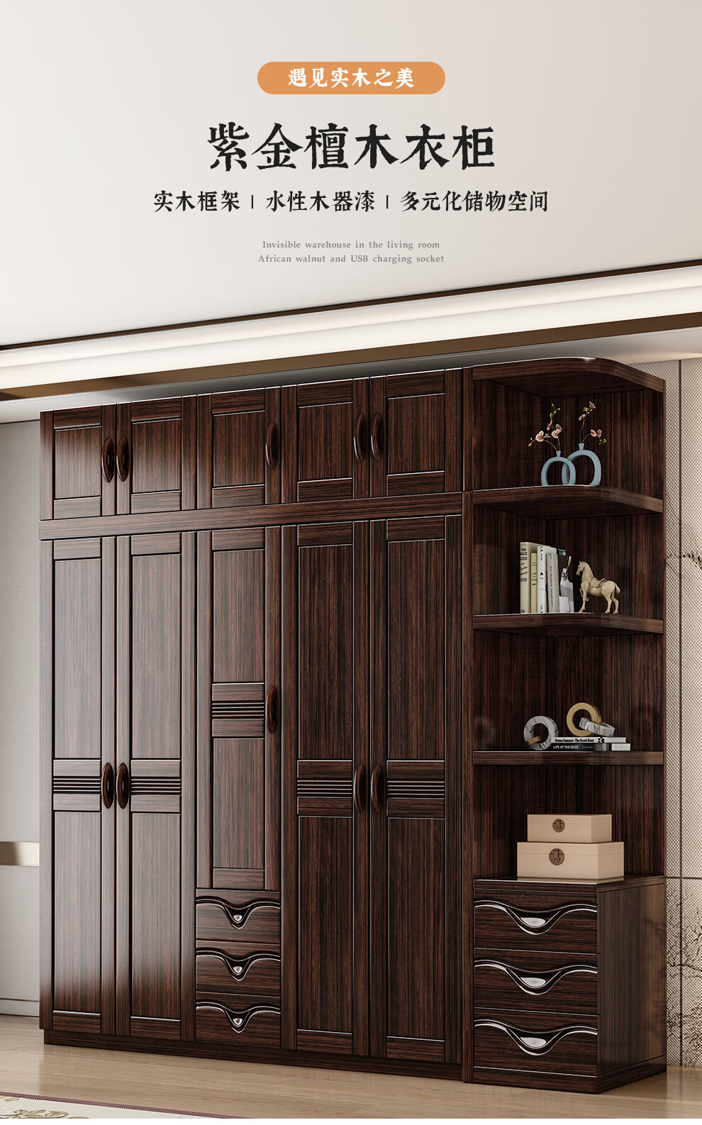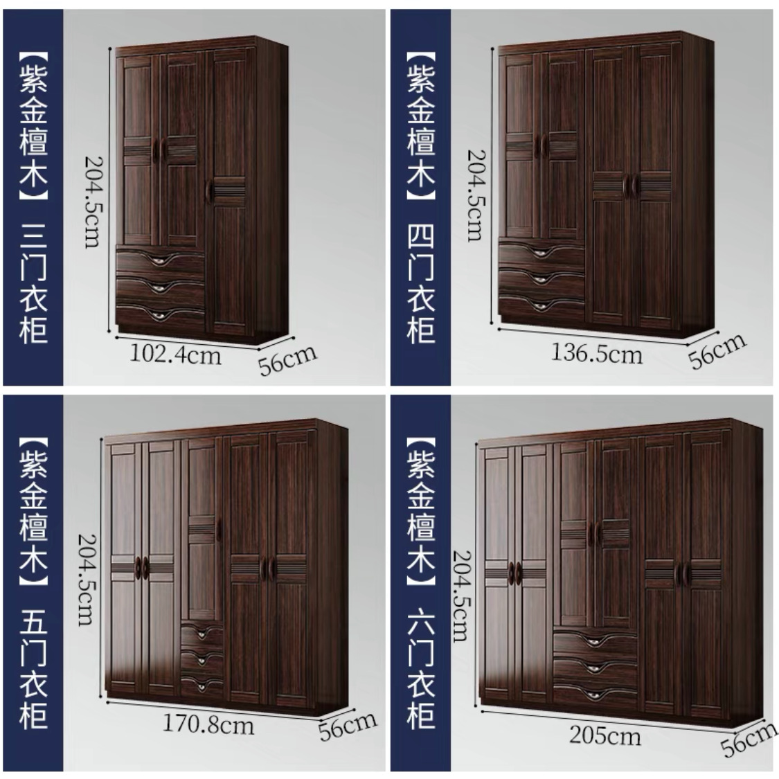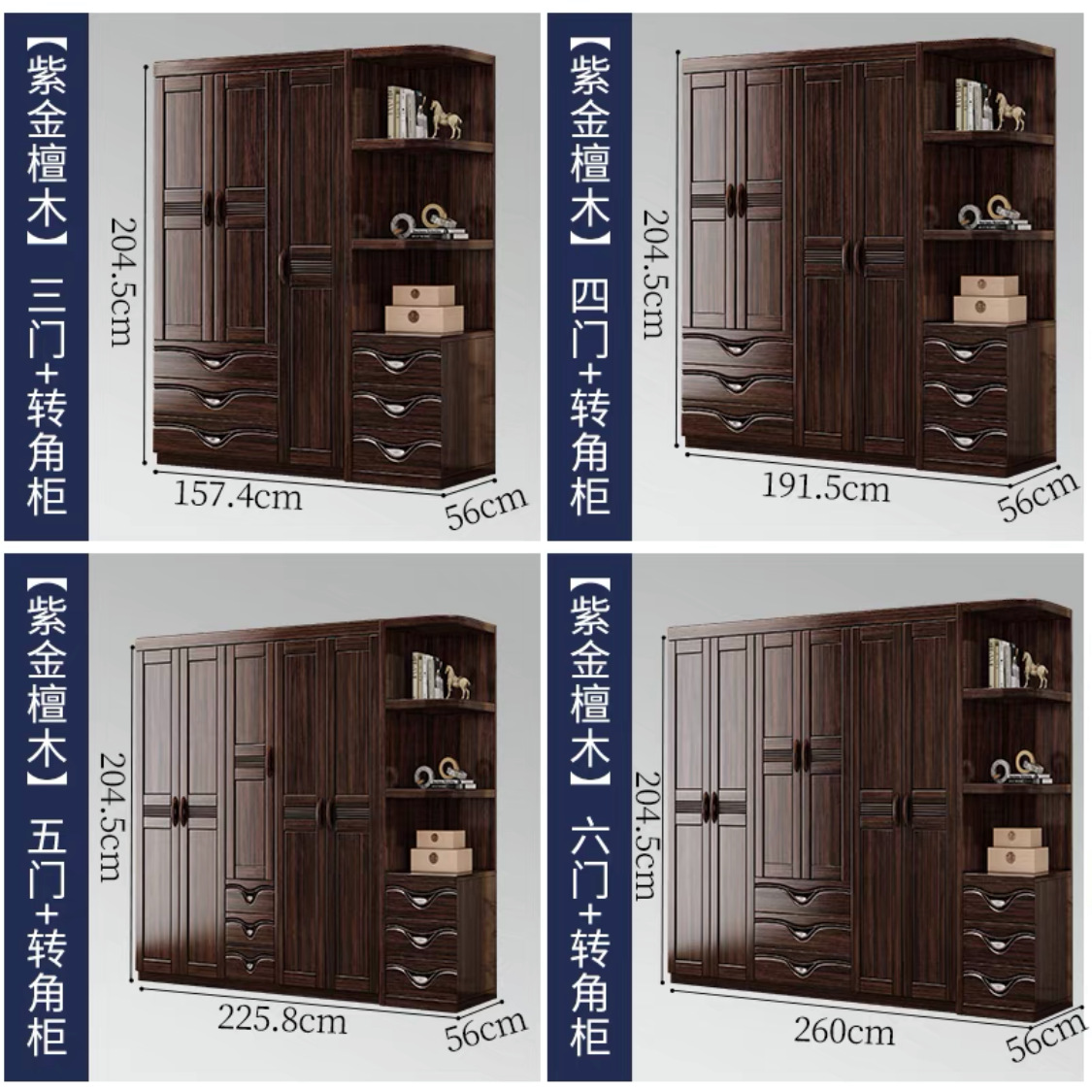 새로운 중국 스타일의 보라색 금색 샌달 우드 단단한 나무 옷장 홈 침실 평면 문 사물함 대용량 옷장 보관 캐비닛