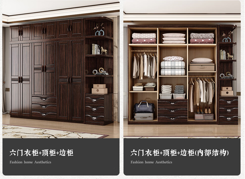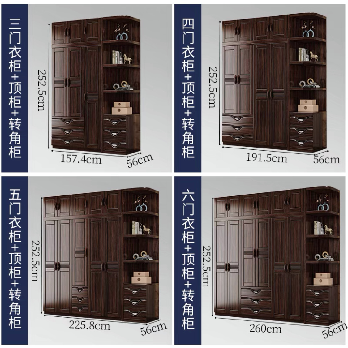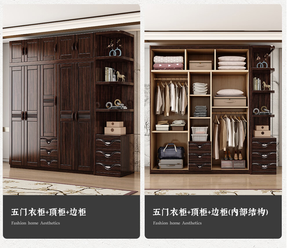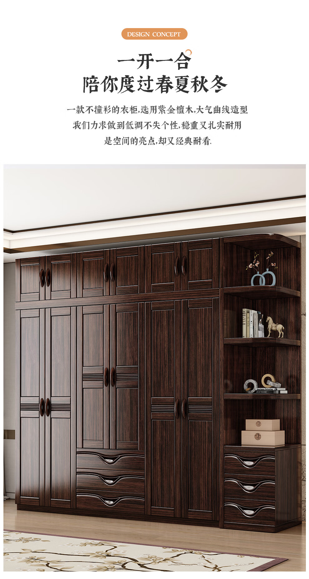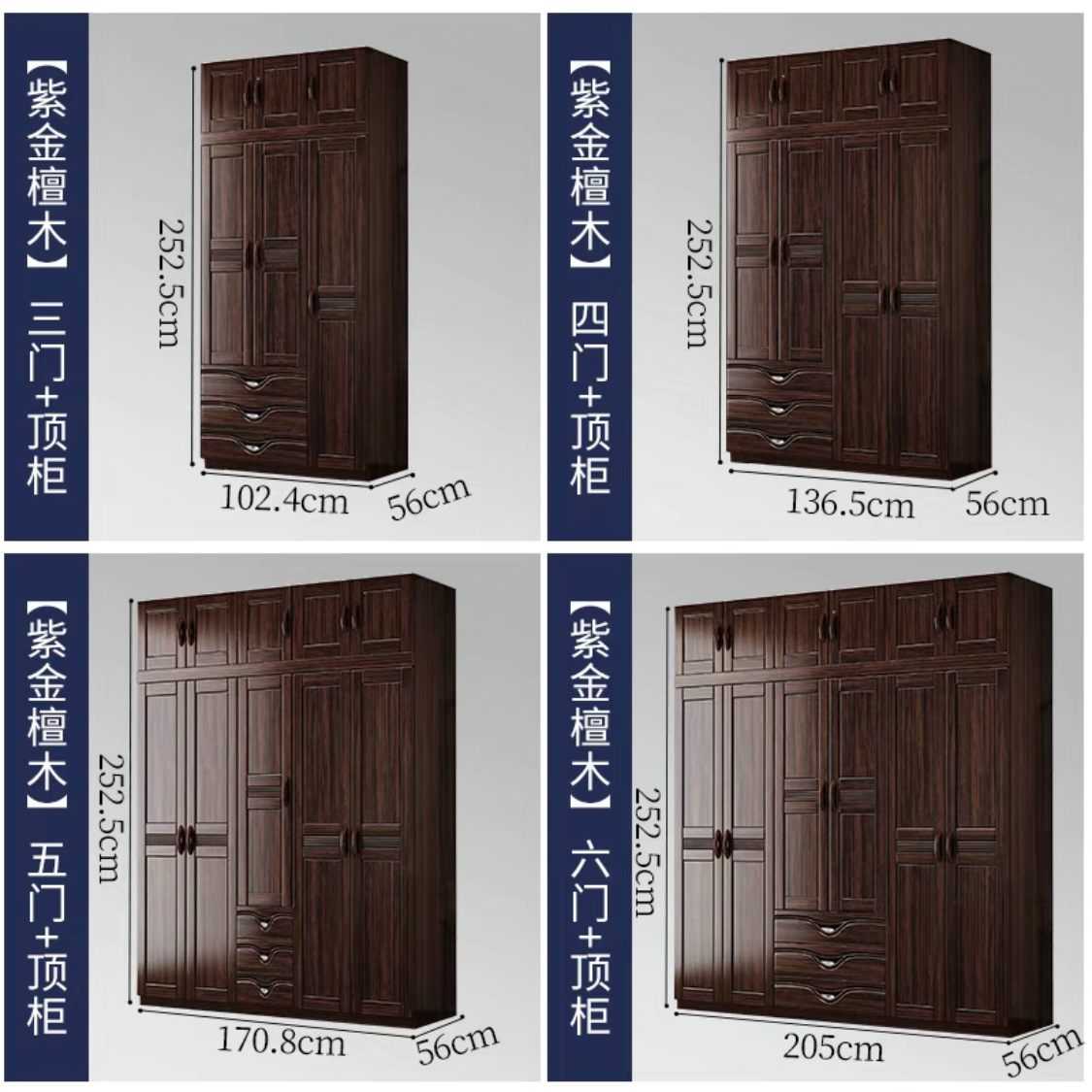 새로운 중국 스타일의 보라색 금색 샌달 우드 단단한 나무 옷장 홈 침실 평면 문 사물함 대용량 옷장 보관 캐비닛