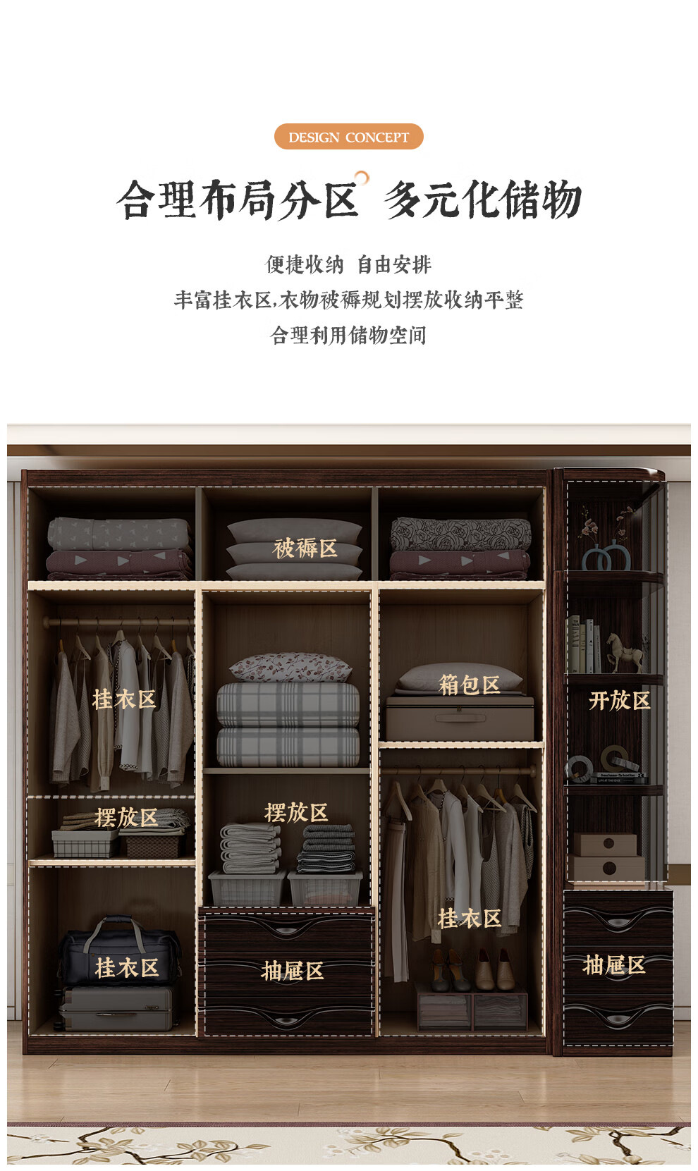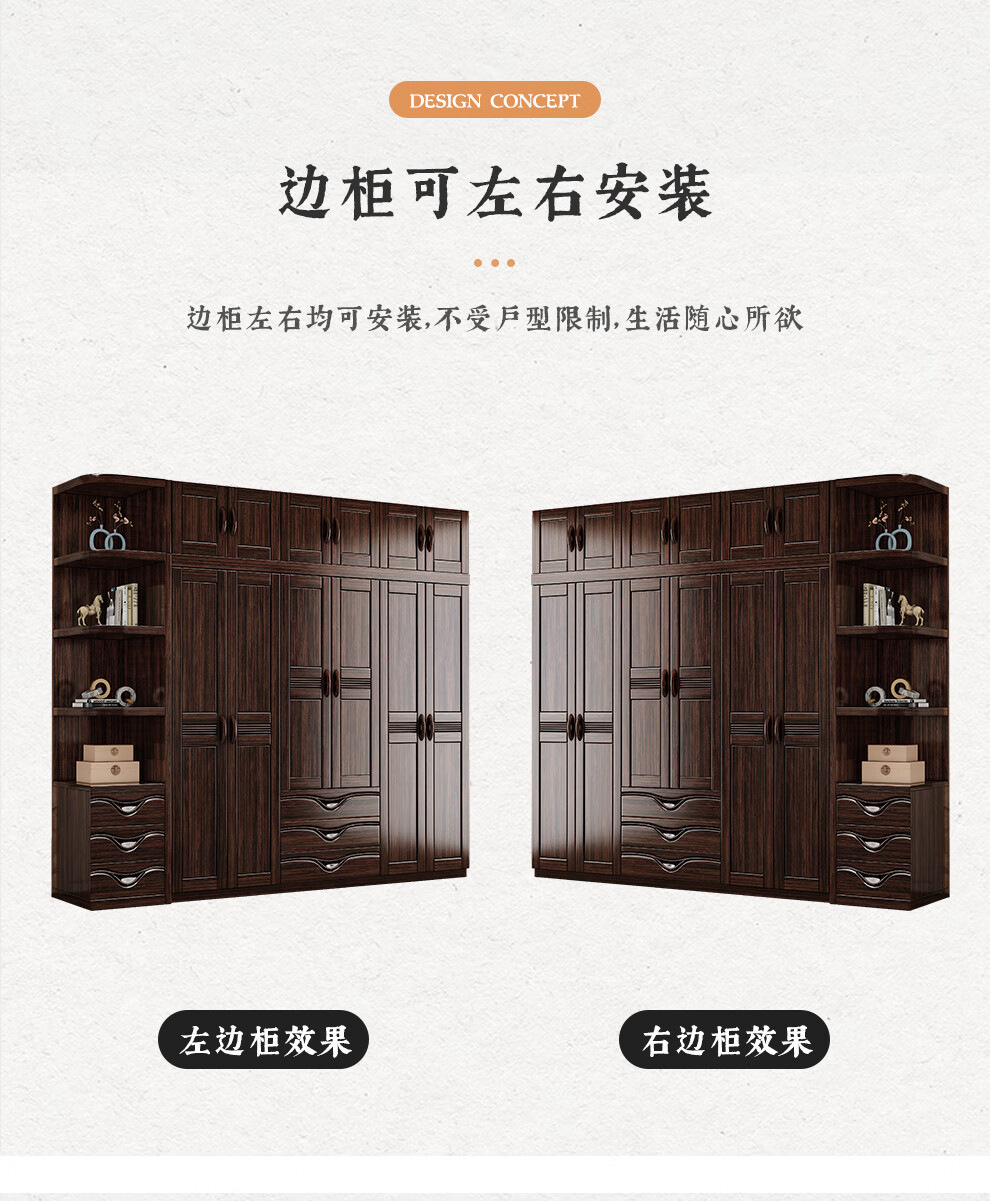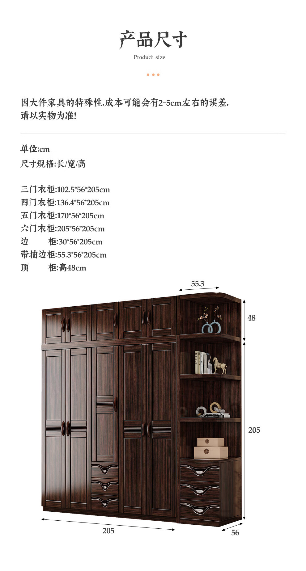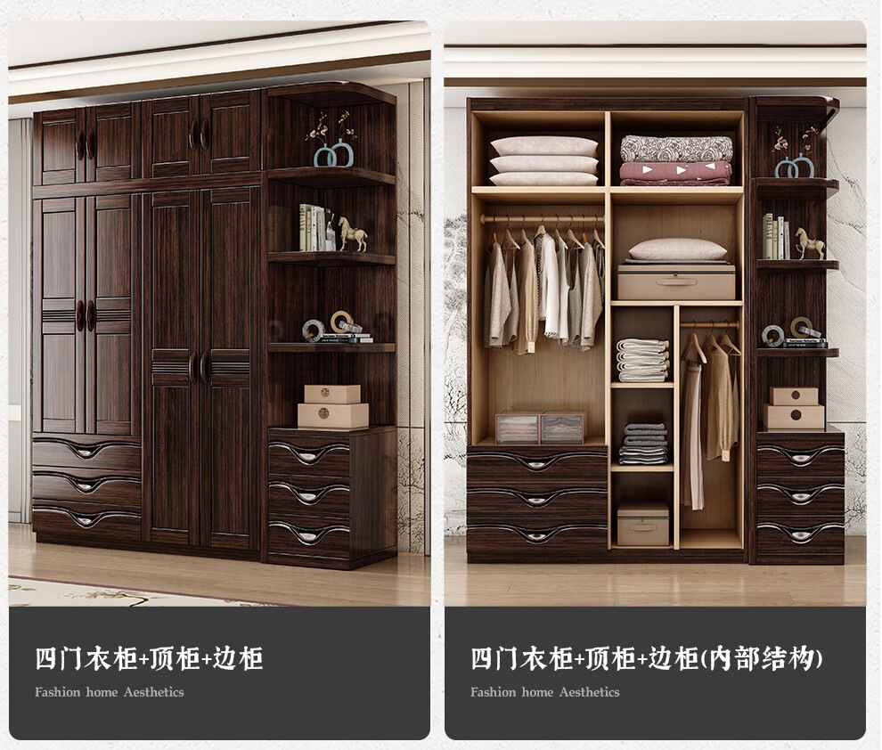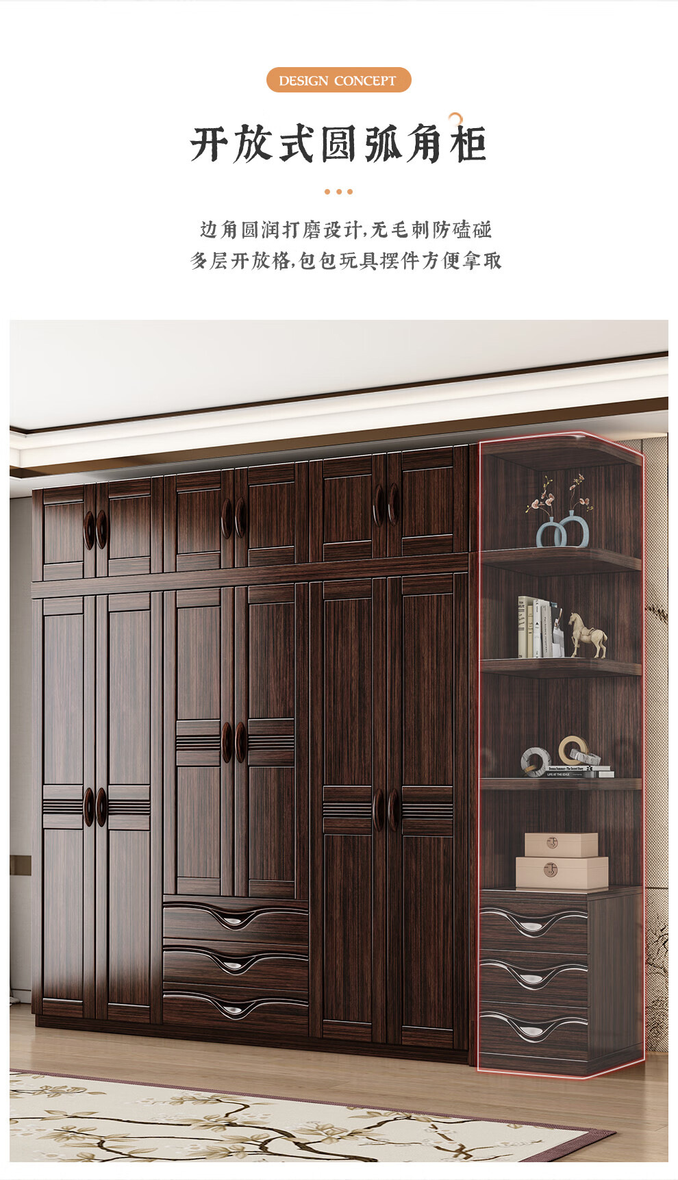 새로운 중국 스타일의 보라색 금색 샌달 우드 단단한 나무 옷장 홈 침실 평면 문 사물함 대용량 옷장 보관 캐비닛