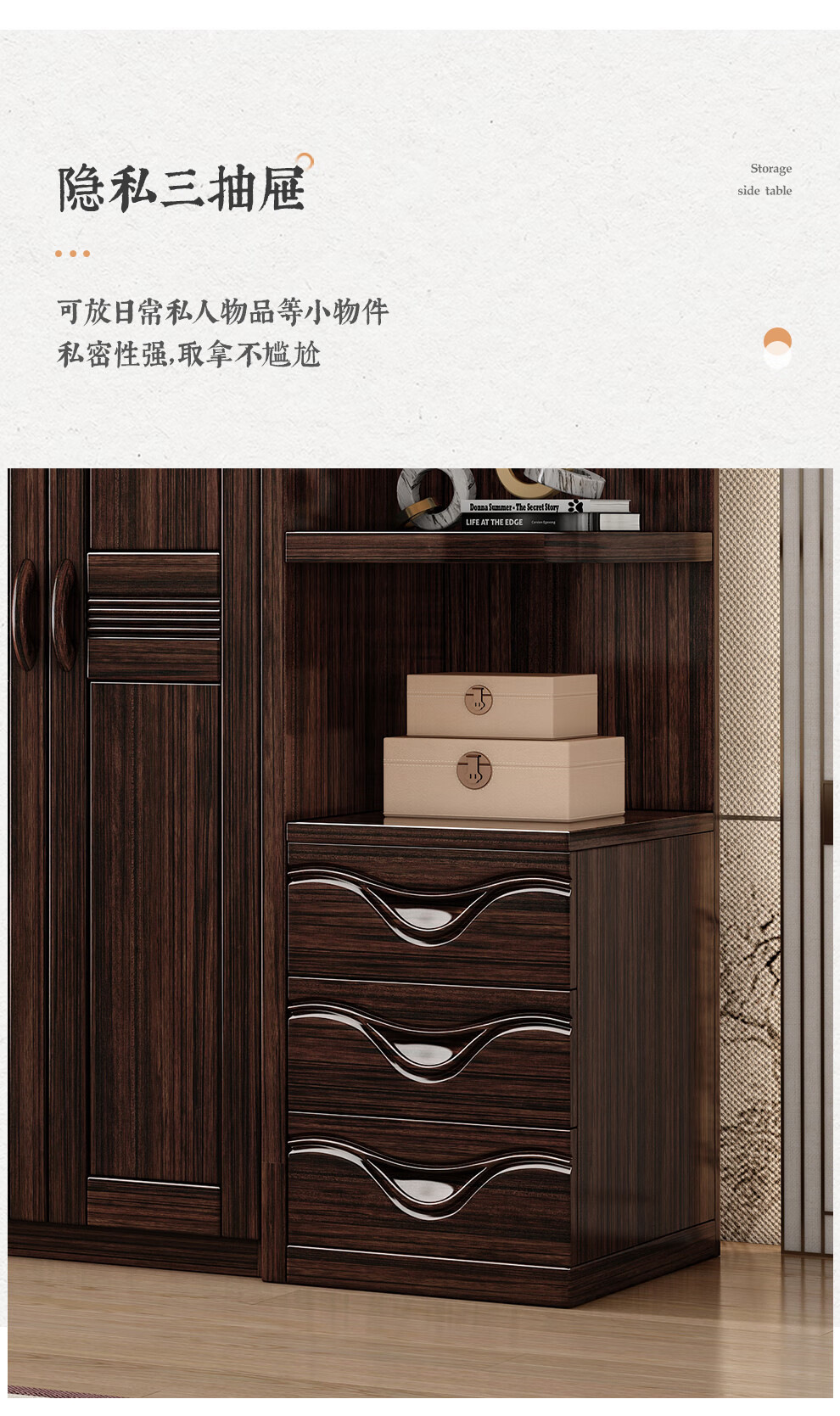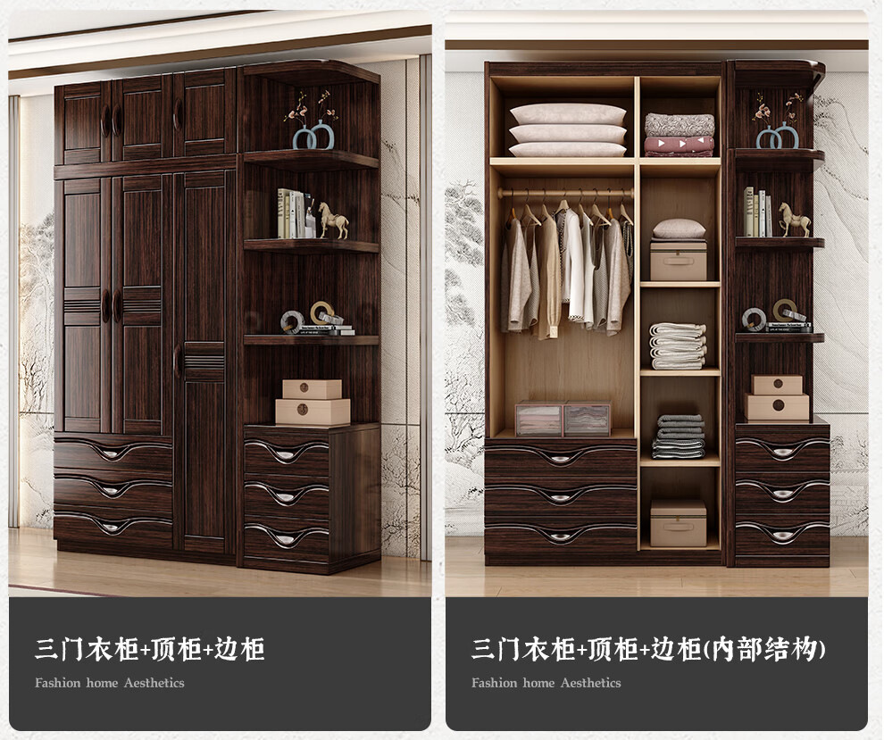 • [퍼플 골드 샌달 우드] 옷장 + 상단 캐비닛 + 서랍이있는 사이드 캐비닛