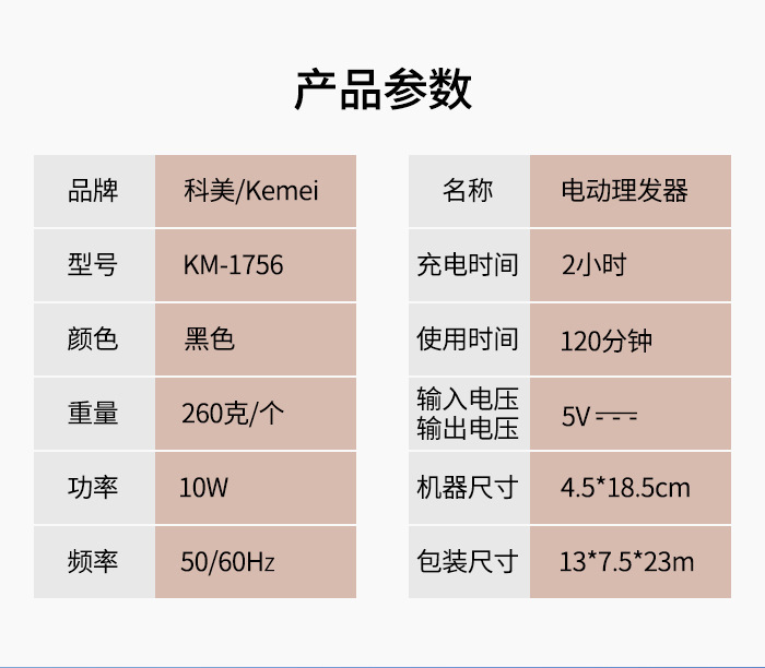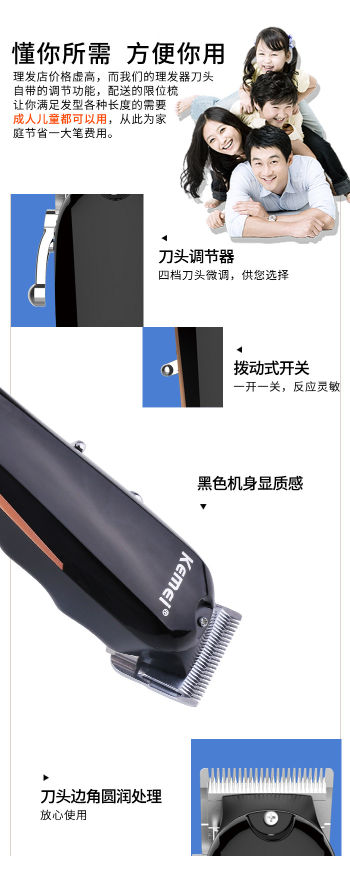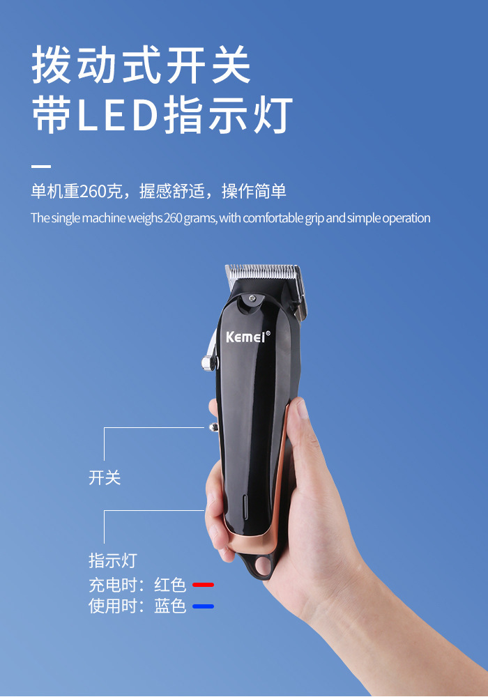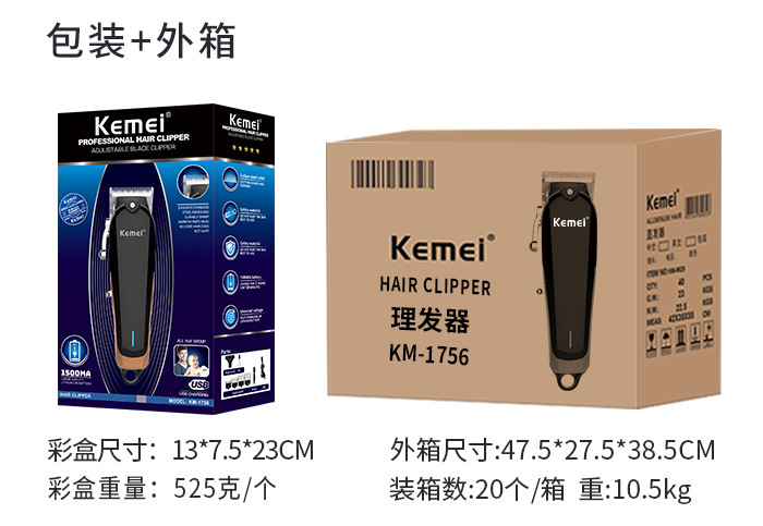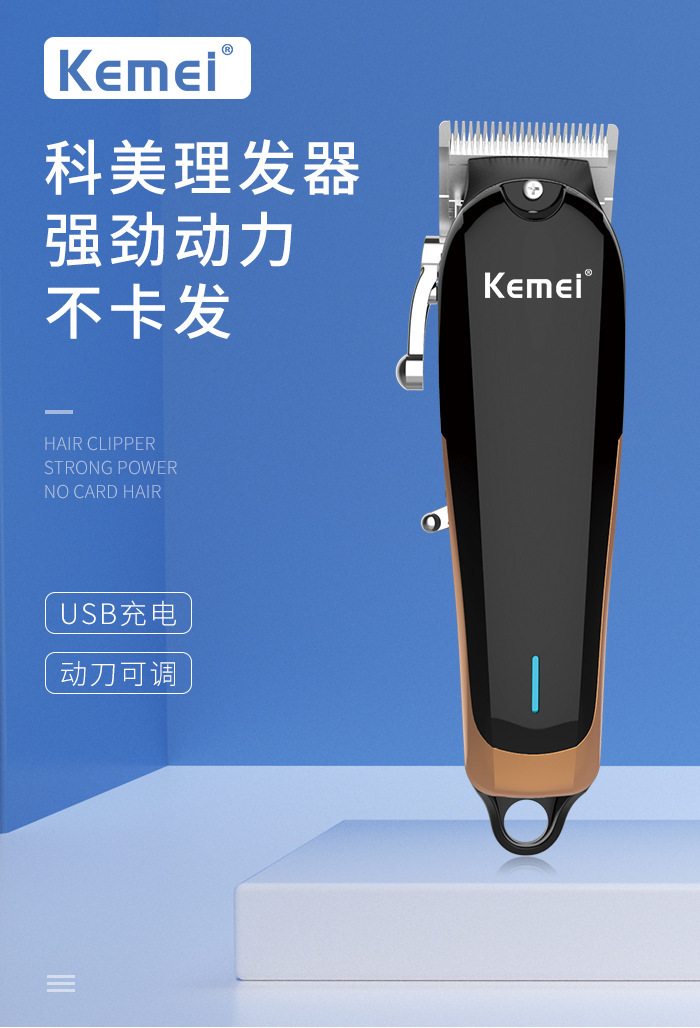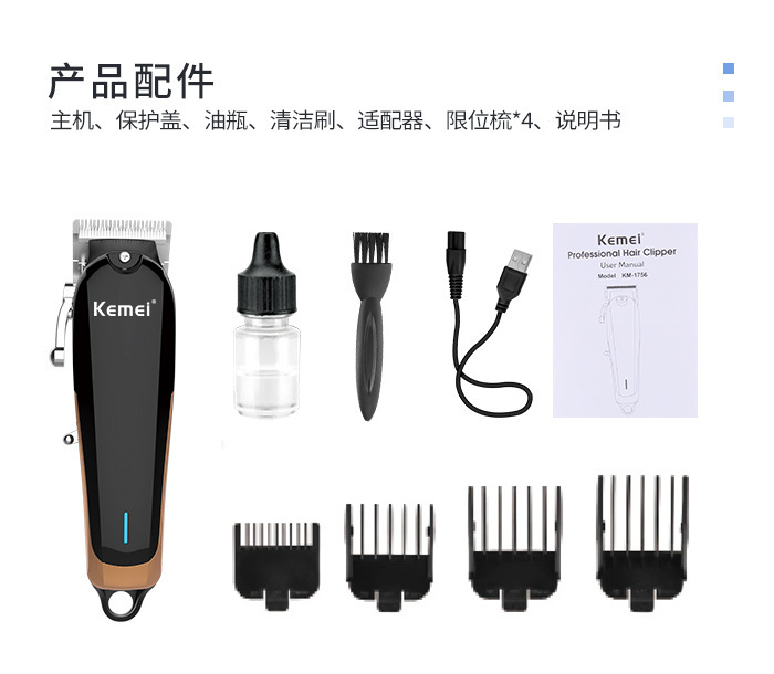 KEMEI Kemei 전기 클리퍼 KM-1756 고출력 커터 헤드 조절 가능한 USB 충전 헤어 클리퍼 조각 클리퍼스토어 가기