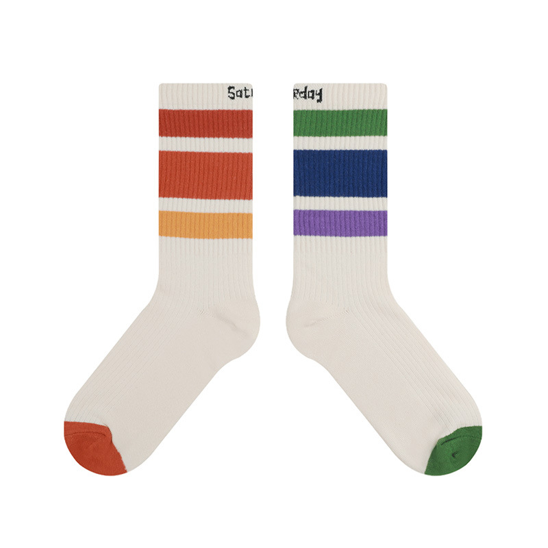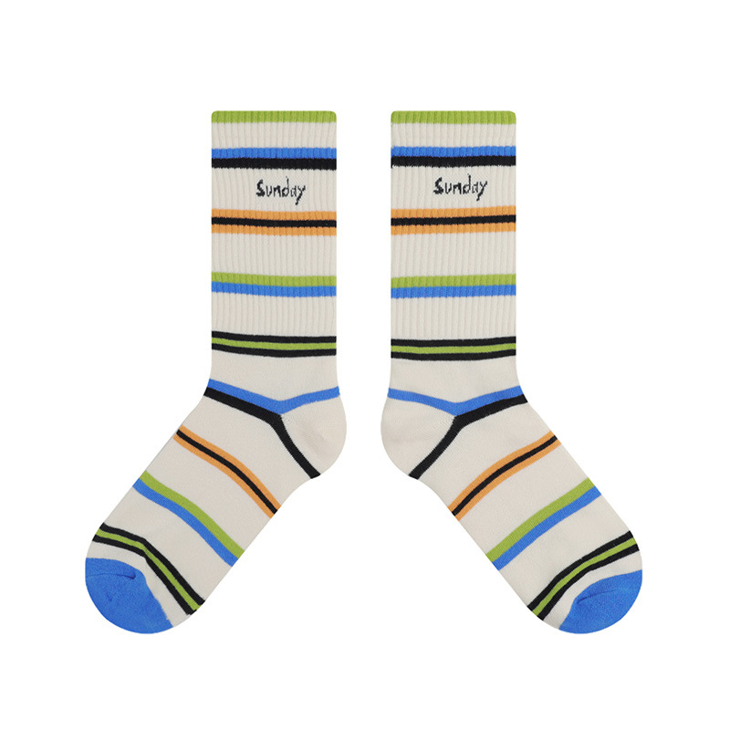 DAMAHHOV 일본식 심플 스트라이프 중간 길이 양말 여성용 봄과 여름 스트리트 트렌디 모든 경기 스포츠 양말 남성용 커플 면 양말스토어 가기