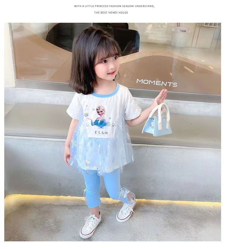 여자 여름 정장 2024 새로운 아동복 어린이 반팔 티셔츠 중소 어린이 유행 아기 바닥 탑 유행스토어 가기