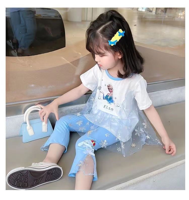 여자 여름 정장 2024 새로운 아동복 어린이 반팔 티셔츠 중소 어린이 유행 아기 바닥 탑 유행