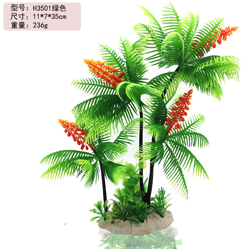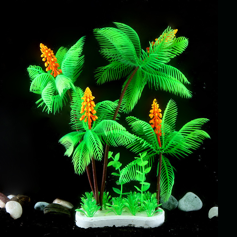 어항 풍경 코코넛 나무 수족관 장식 패키지 모델 장식 작은 코코넛 나무 시뮬레이션 수생 식물 플라스틱 꽃 녹색