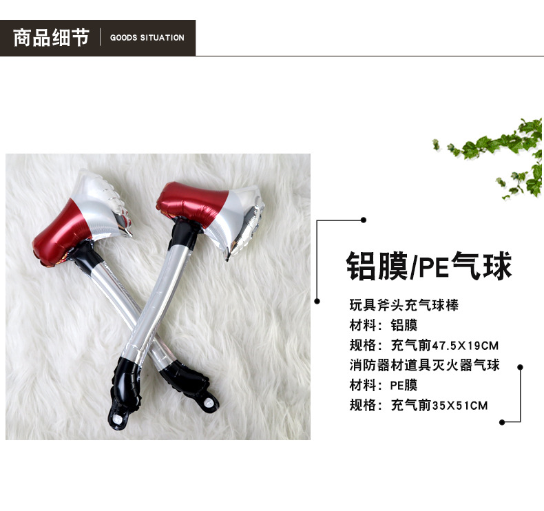 소방 장비 소품, 소화기, 풍선 탱크, 풍선 장난감, 도끼, 풍선 볼 스틱 장식용 재고 있음