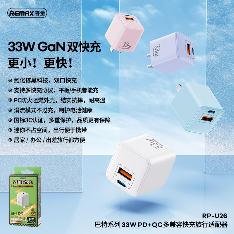 REMAX 33W Apple 15 휴대폰 충전기용 질화 갈륨 고속 충전 어댑터 type-C 충전 헤드스토어 가기