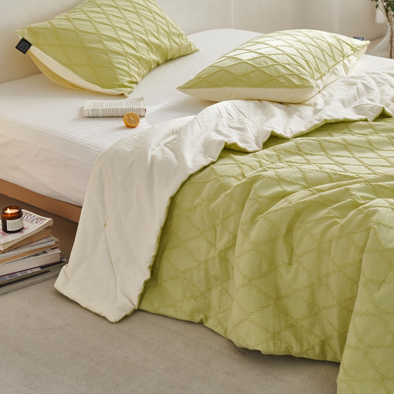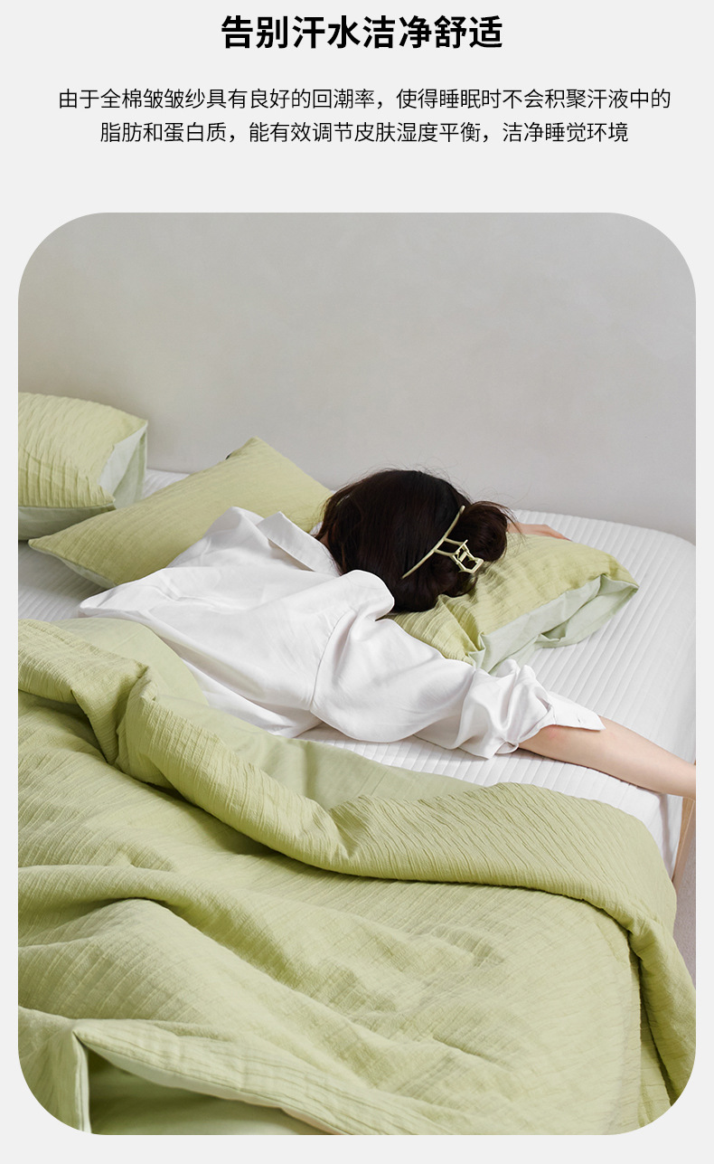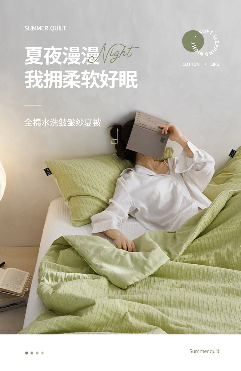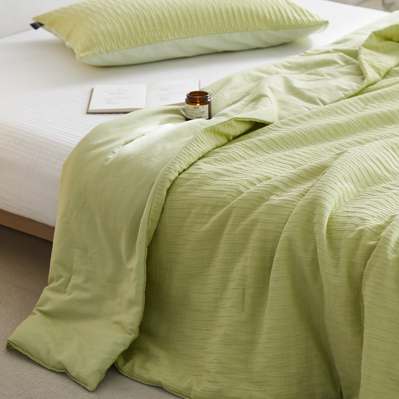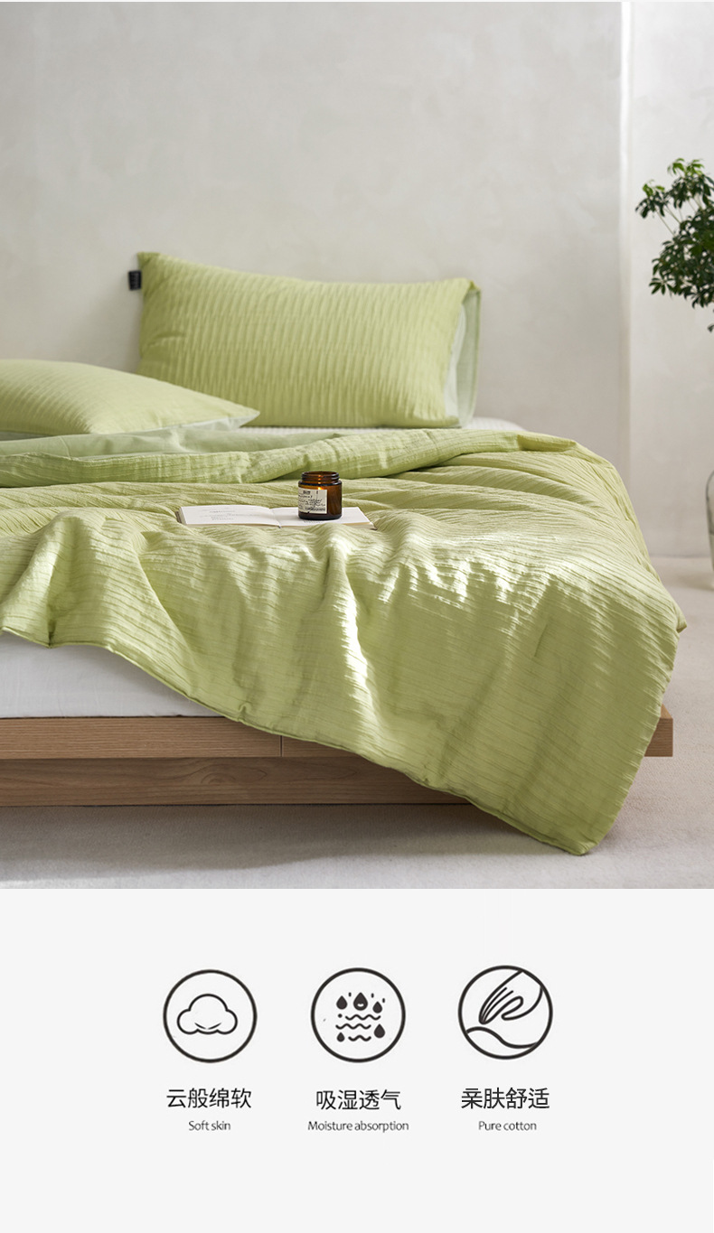 26 ° C 면 니트 면 주름 원사 여름 쿨 이불 쓰리 피스 여름 면 에어컨 이불 얇은 이불 기계 빨