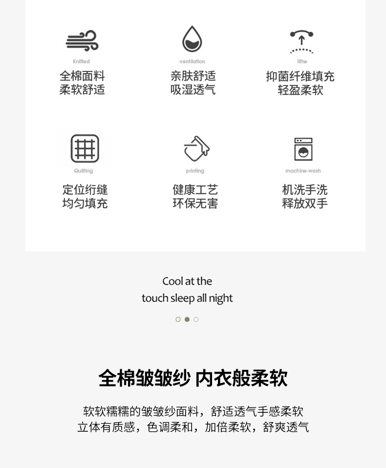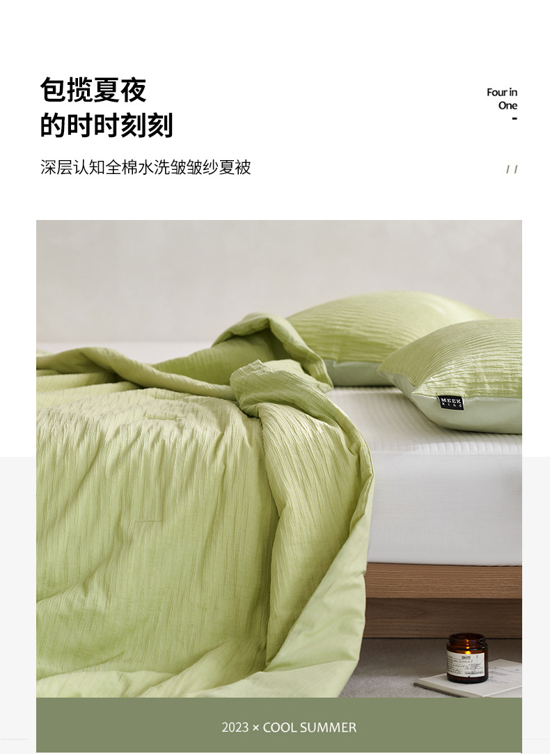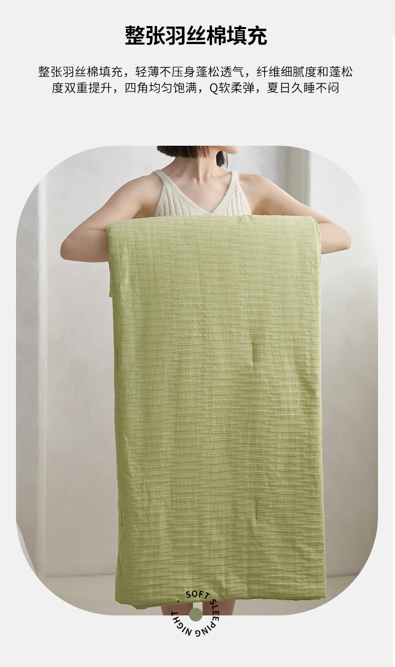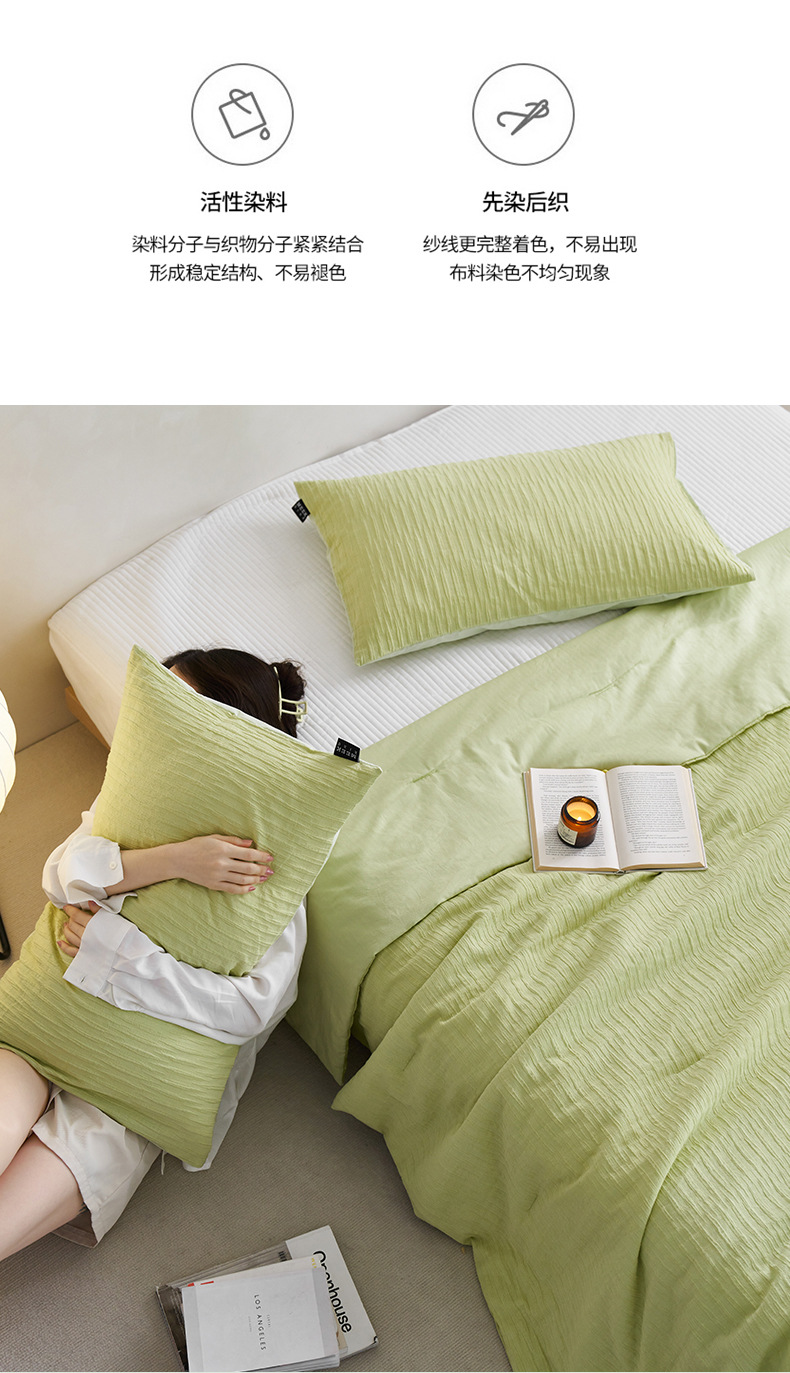 26 ° C 면 니트 면 주름 원사 여름 쿨 이불 쓰리 피스 여름 면 에어컨 이불 얇은 이불 기계 빨